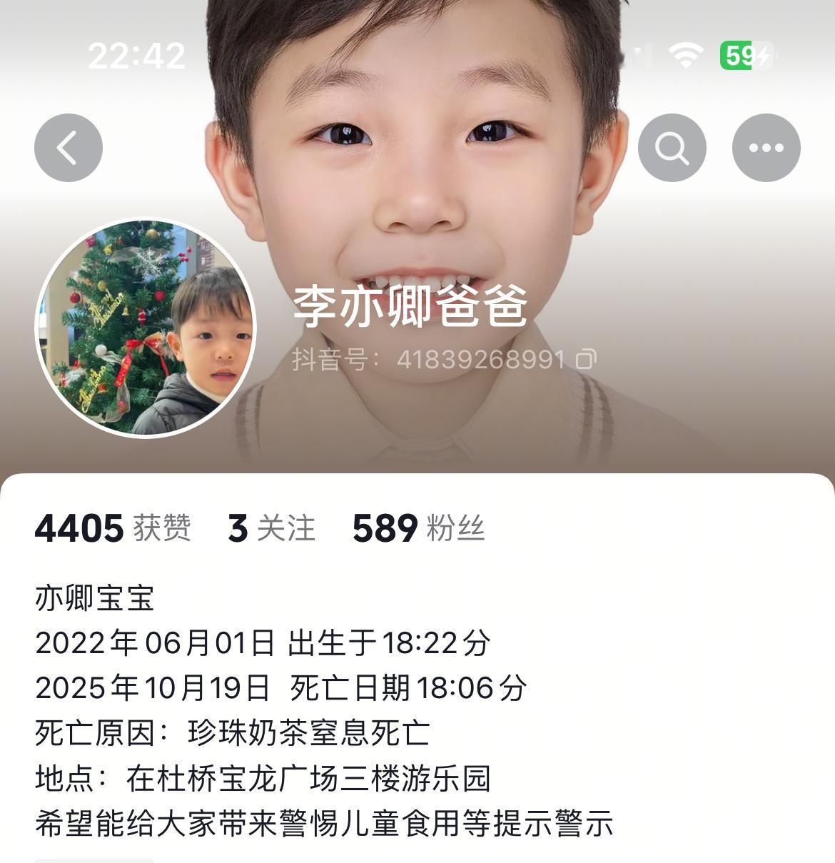 三岁孩子喝珍珠奶茶,珍珠卡气管窒息而死,家长准备维权找奶茶店责任。事情发生于2025年10月19日,地点台州临海杜桥镇宝龙广场三楼,家长购买的奶茶品牌是古X奶茶,知名品牌,很多商场都有这个牌子。这么小的孩子,为啥要给孩子喝珍珠奶茶呢?实在百思不得其解,小孩无知,大人也不懂?珍珠奶茶吸管 饮品中毒 儿童冲饮