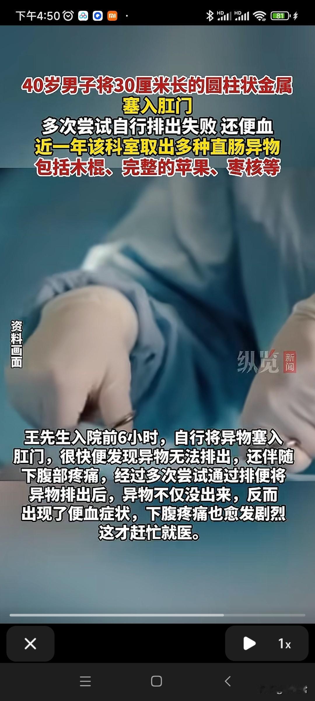 有了抖音, 也算是见识了各种牛鬼蛇神! 这种只是想想就觉得疼! 30厘米的金属圆柱塞进肛门里, 怎么想的?! 不怕自己噶了啊! 肛周下坠 肠子掉出来 肠子外露 肠子出来 鼻孔里塞东西 不锈肛 肛周异物