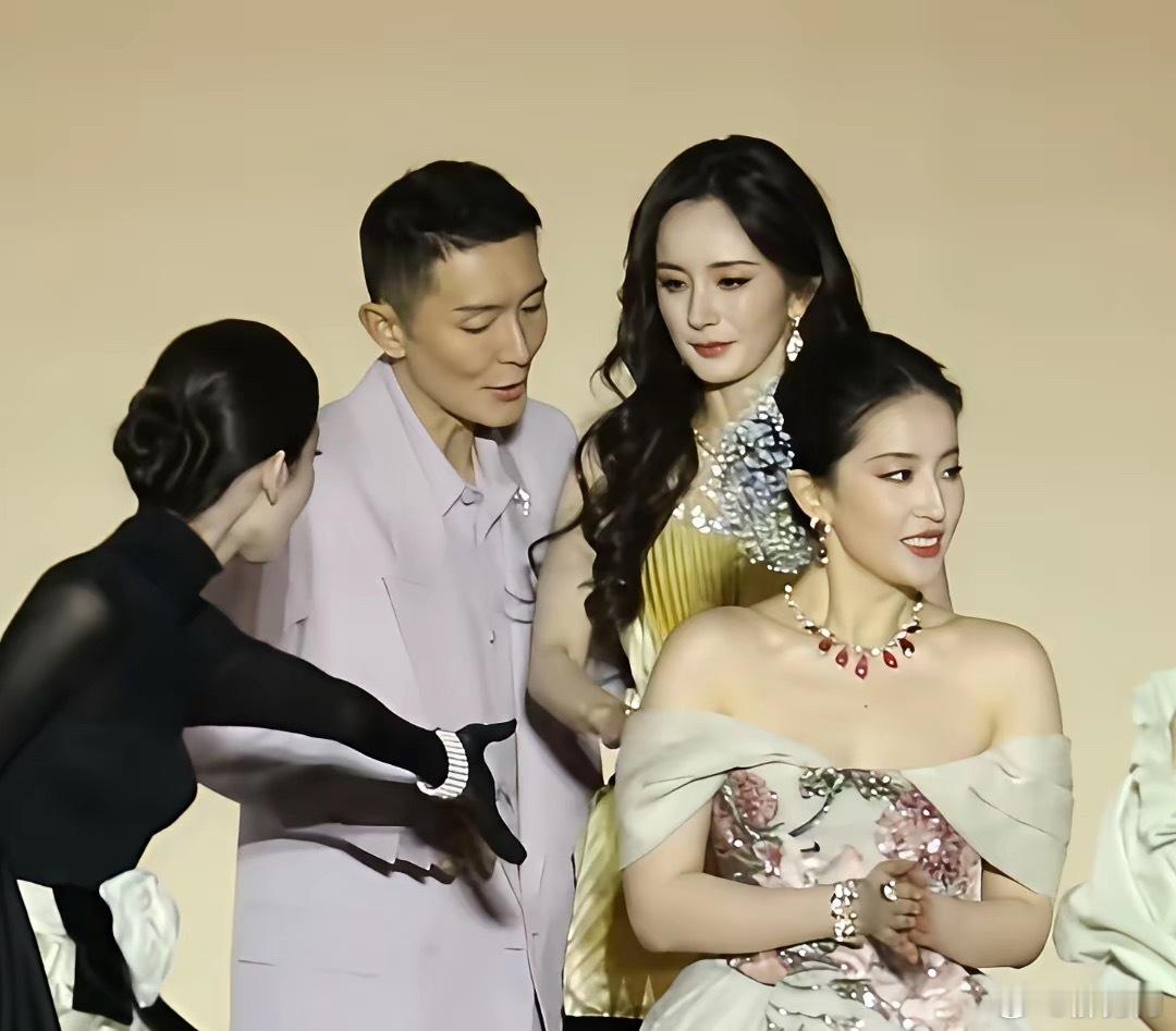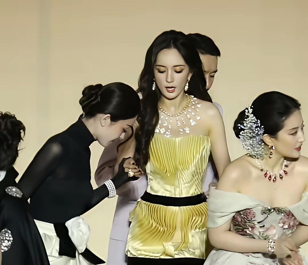昨晚的VOGUE20周年盛典内场合影,没有娜扎要多耽误一分钟。当时刘亦菲先出来,站在第二个台阶上,接着杨幂后出来,娜扎伸手牵着杨幂下台阶。