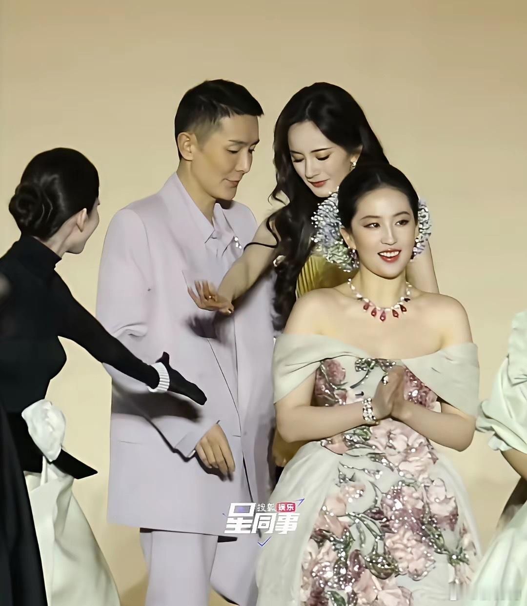 这一牵也是腾出个位置,让杨幂有地方站。至于两个当晚最大的咖不交流。