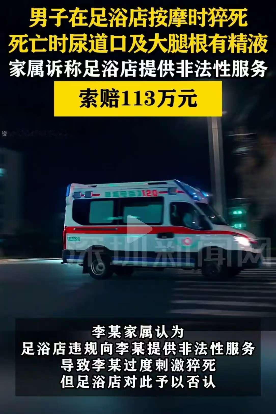 男子足浴店按摩离奇猝死,家属质疑店家提供非法服务索赔113万,法院判了。 湖南汉寿,男子凌晨去足浴店按摩,一女技师为他服务。1个多小时候后,男子被发现无自主呼吸,经抢救无效后宣告死亡。司法鉴定男子尿道口和大腿根部有精液。 家属认为,足浴店违规经营,导致男子受刺激死亡。把足浴店老板告上法庭,索赔113万。法院这样判。 2025年3月19日凌晨0点左右,李某翻来覆去睡不着,就找了个足浴店去按摩。 进入足浴店后,一个姓朱的员工,热情接待了他。并当场叫来四五个女技工,让他挑选。 李某最终选定工号为68号的的女技师杨某,为自己做足疗。 服务开始约一小时二十分钟后,杨某注意到,李某始终保持着睡眠状态,就跑到前台,让工作人员去看看啥情况。 前台服务员跑到李某跟前仔细一看,发现李某果然不太对劲,她赶紧向店长报告了情况,同时拨打了急救电话。 虽然救护车迅速抵达现场,但医护人员检查,发现李某已经失去自主呼吸。 医护人员现场进行了约10多分钟的急救后,李某被转运至医院继续抢救。 医院又经过半小时的全力救治,最终宣告李某死亡。 在对李某抢救,和善后处理过程中,足浴店先行垫付了8万元的费用。 事情发生后,家属难以接受这突如其来的噩耗,他们认为,李某出门时还好好的,在足疗店待了不到两个小时,人咋就没了? 为明确死因,家属申请进行了司法鉴定。 鉴定结果显示出两个关键点:一是李某尿道口及大腿根部存在精液残留; 二是死者生前患有心脏病等基础疾病,直接死因为主动脉夹层破裂出血引发心脏压塞,导致急性心功能衰竭。 基于这些发现,家属认为,足浴店存在违规经营行为,并怀疑店里提供了非法服务,导致李某在过度刺激下发生猝死。 更让家属无法接受的是,李某发病后一个多小时后,工作人员才拨打急救电话。 因耽误了最佳抢救时间,因此,足浴店必须对李某的死亡,承担相应的赔偿责任。 李某家属不依不饶,将足浴店经营者徐某诉至法院,提出了三项主要理由:首先,鉴定报告中发现的精液痕迹,可作为非法服务的证据; 其次,足浴店在凌晨时段提供此类服务,违反公序良俗和治安管理规定; 最后,店铺未能及时发现异常并采取有效救助措施,存在明显过错。 据此,家属依据相关法律规定,提出了113万元的赔偿请求。 但是足浴店对李某家属提出的这些理由,根本不承认。 足浴店负责人徐某表示:足浴店证件齐全,多年来一直正规经营,无其他服务。 按摩中客人睡着是正常现象,女技师在发现李某有异常后,及时拨打了急救电话。 再说,李某属于自身疾病导致的猝死,和足疗店无关,且在李某发病后,和进行抢救时,足疗店已垫付8万多元。 法院审理认为,虽然损害事实确实存在,但关键在于能否证明足浴店存在违法行为,以及该行为与死亡结果之间存在因果关系。 家属提供的鉴定报告,虽显示精液存在,但未对其形成原因作出明确说明。 根据《民事诉讼法》第67条第一款规定:当事人对自己提出的主张,有责任提供证据。 根据谁主张谁举证的原则,家属未能提供充分证据证明,非法服务的存在,因此该项主张未获法院支持。 但足浴店作为经营场所,确实存在未尽到安全保障义务的情形。 《民法典》第一千一百九十八条规定: 宾馆、商场、银行、车站、机场、体育场馆、娱乐场所等经营场所、公共场所的经营者、管理者或者群众活动的组织者,未尽到安全保障义务,造成他人损害的,应当承担侵权责任。 如果公共经营者没有尽到安全保障义务的,应承担侵权责任。 根据法庭调查,足浴店没有配备必要的急救设施,没在店内张贴警示标志,违反了安全保障义务。 当工作人员发现顾客身体异常时,仅拨打了急救电话,而未采取任何现场急救措施,这些疏失都构成了经营者的过错。 但李某作为完全民事行为能力人,应当对自身健康状况有充分认知。 《民法典》第一千一百七十三条规定: 被侵权人对同一损害的发生或者扩大有过错的,可以减轻侵权人的责任。 李某在明知患有心脏病的情况下,仍在深夜前往足浴店消费,自身也存在重大过错。 根据侵权责任相抵的原则,可以相应减轻,经营者的责任比例。 最终,法院确认本案涉及的总损失,金额为114万余元。 综合考虑双方过错程度,及原因力大小,判定由李某自行承担85%的责任,足浴店承担15%的赔偿责任。 扣除先前已支付的8万元,足浴店还需向李某家属,支付9万元赔偿款。 对此你怎么看?
