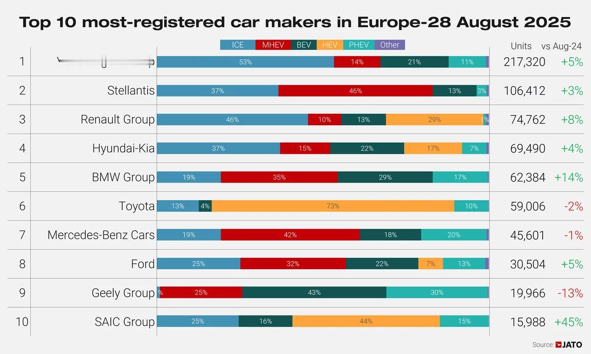 图3:9月欧洲28国top10销量-品牌(不计动力形式):吉利、上汽