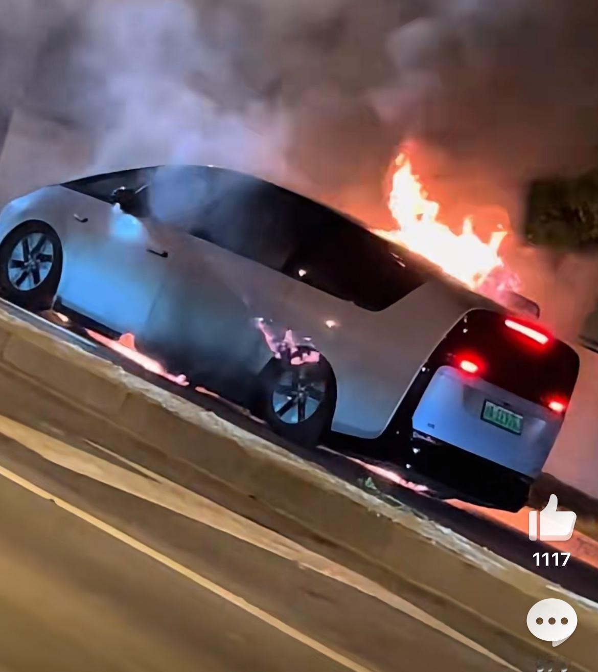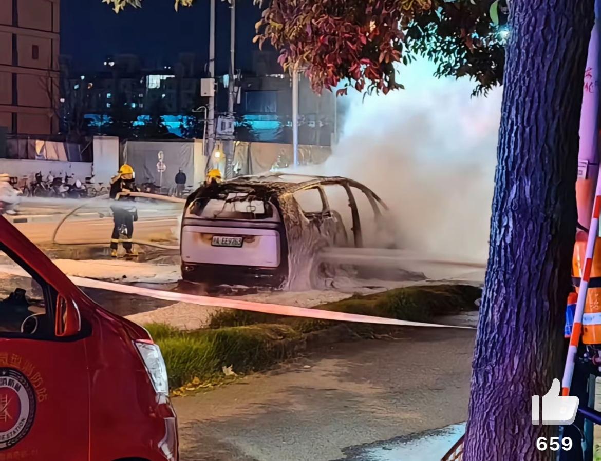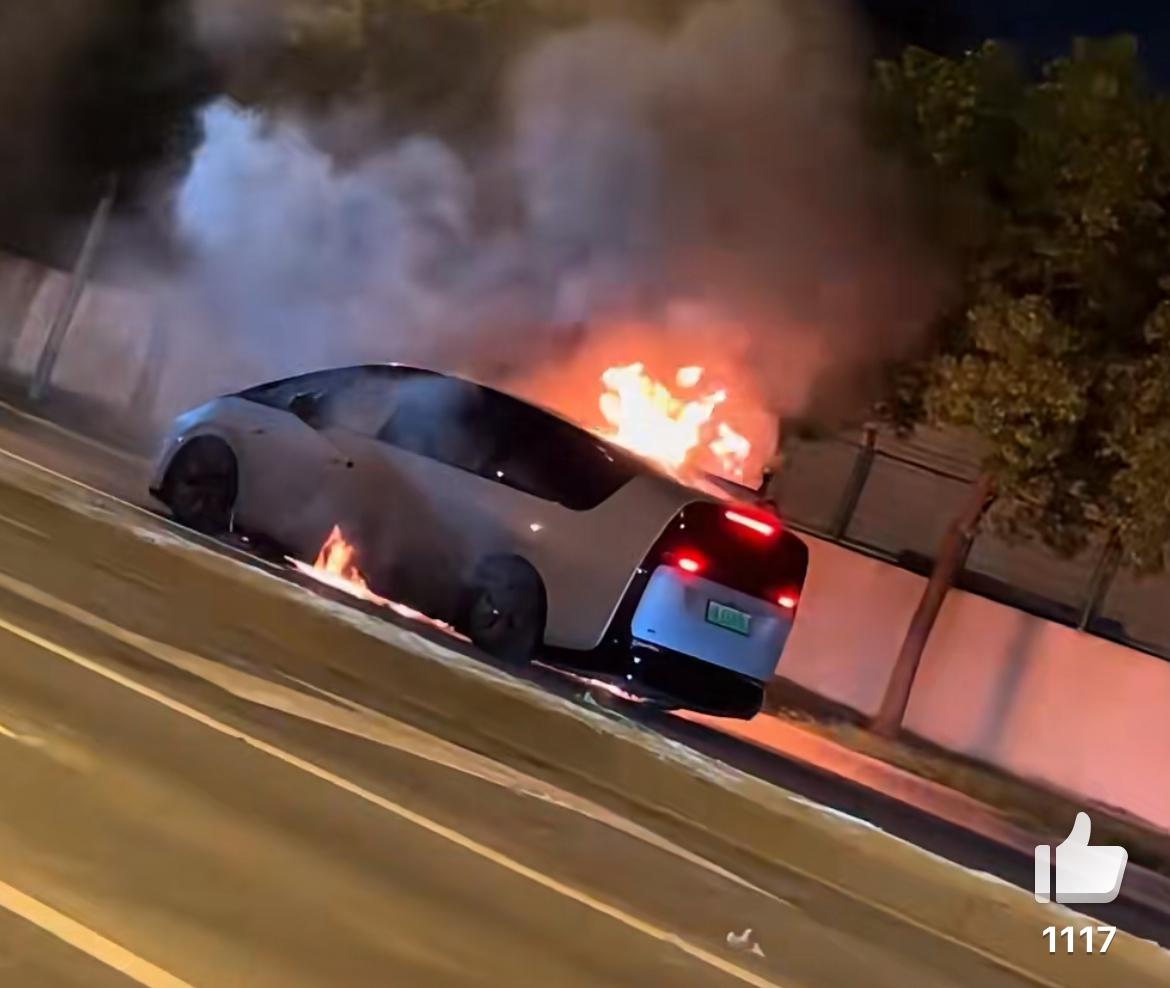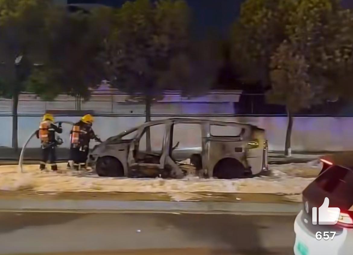 行车记录仪拍下一辆某想MEGA自燃全过程,幸好车主跑出来了。事情发生于上海徐汇区漕河泾附近,这辆车在等完红绿灯,起步不到20米的距离,车底开始突然冒火花,之后开始爆燃,时间不超过3秒钟,熊熊大火升起。消防人员赶来灭火,车辆只剩车架子。车自燃火灾 自燃新能源汽车 路遇自燃车