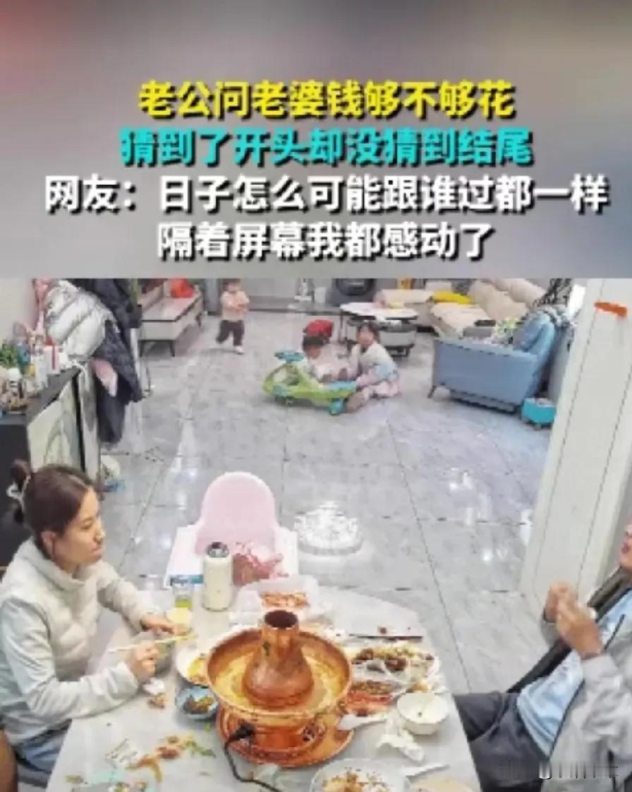 充满“套路”的爱,网络热议山东夫妻“掏口袋”事件 最近山东一对夫妻火了,因为一个“掏口袋”视频,大家都说甜度超标,这到底是怎么了呢。 事情是这样的,入冬了嘛,要买儿童衣物,丈夫就问钱够不够用,妻子就等着他掏钱,结果,他掏出来一张纸巾,擦了擦嘴,第一次试探,有点幽默,过了一会儿,他又问钱够不够,妻子说上次给的还没花完呢,这回丈夫掏出牙签,剔起了牙,妻子有点小失望了,后来丈夫又认真问了一遍,妻子红着脸说不够,他掏出两沓钱,妻子乐开了花,这就是三次“掏口袋”反转剧。 大家都在想,这到底是怎么一回事,一开始都觉得是敷衍,后来发现是“撒狗粮”,先抑后扬,网友们评论说,这才是好的婚姻,浪漫的表达,你家那位,是怎么表达爱意的呢,大家看完这个故事,都会去想,男人这样的做法是真的爱吗。 其实丈夫这是把给钱变成玩笑,增加了生活乐趣,不是那种直接给钱的平淡,他满足了妻子的情感需求,被关注,被重视,他很细心,通过经济付出,让妻子更有安全感,用心经营的婚姻,真的很动人,好的婚姻,不就是这样吗,细节之处见真情。