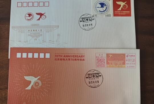 北京邮电大学70年校庆 II 1.西门翻新了,样子跟原来差不多,不过太新了,反而没感觉了,旧门拆的时候没来,有点遗憾 2.地铁十二号线通了,蓟门桥站出来走几步就到,交通方便了很多 3.主楼翻新好像后叫未来技术大楼了 4.专门去看李白烈士像,可能因为今天科学会堂有大会,保安把周围都围起来不让靠近了 5.图书馆外观好像没变样 6.学活也翻新了 7.据保洁大叔说就学一还没装修,估计过一段就得装修了 8.邮局都是开盖日戳的,日戳和风景戳不能盖到一起 9.校庆纪念封和机戳 10.这个地方原来应该是个大屏幕吧2008年我们在这看的奥运会开幕式 11.上学的时候3G牌照还没发,现在6G都快了 12.激光全息相片,怀念徐大雄院士 13.返校学校和学院各给了个PIN,羡慕其他院系 14.伴手礼的 15.校庆日风景戳 北京邮电大学 校庆 传邮万里国脉所系 地铁12号线