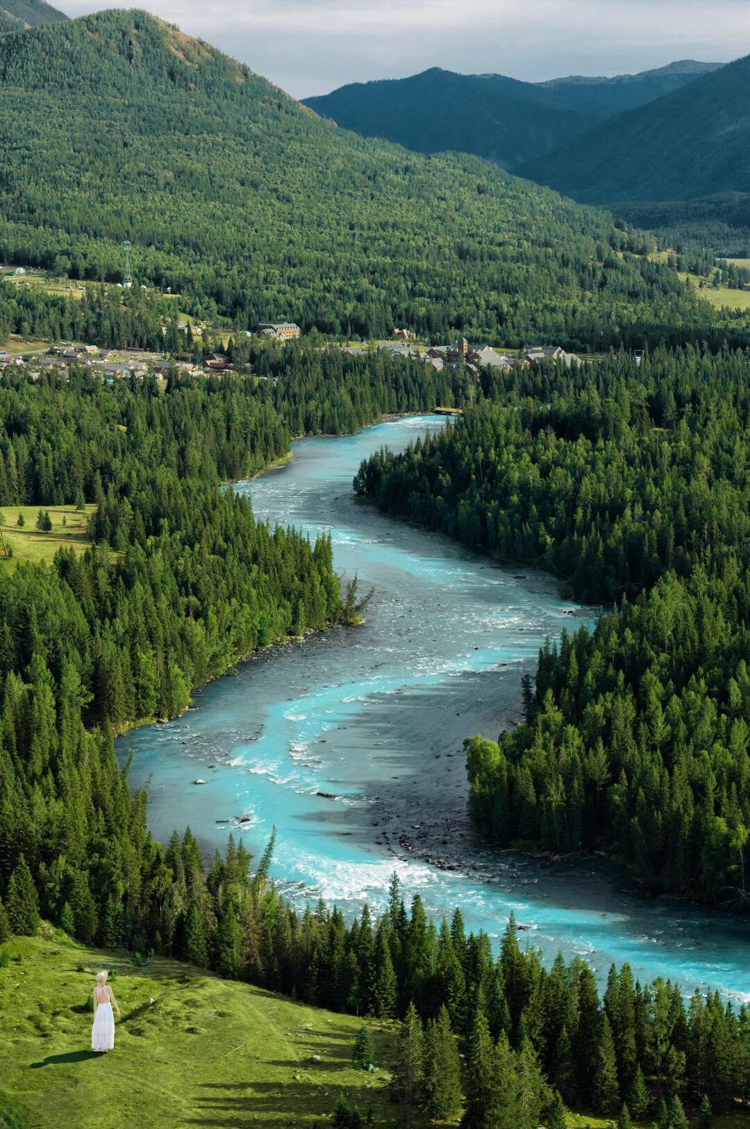 都说喀纳斯秋天美,但没想到夏天🍃来已经美到词穷,湖水碧绿、森林葱郁,🈶种行走在通话故事里的感觉❗️
