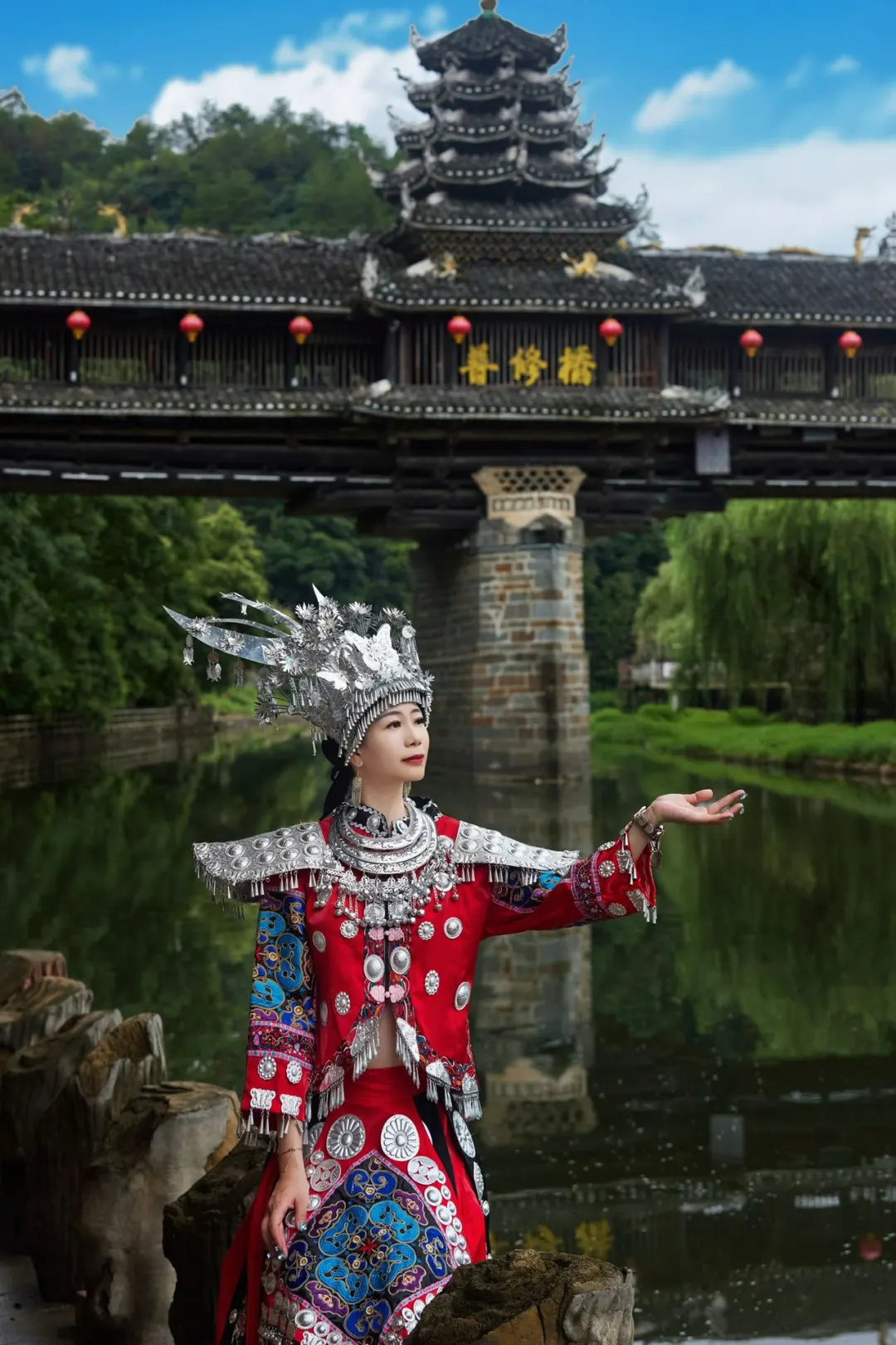 这里🈶很美的风雨桥、吊脚楼倒映在河面,穿着传统服饰,随便一拍就是《国家地理》大片的即视感~