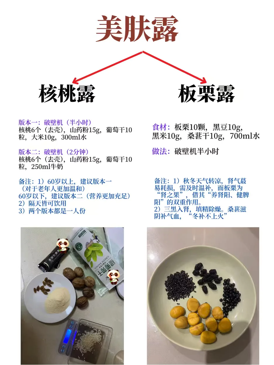 🌹1)美肤露:核桃露+板栗露