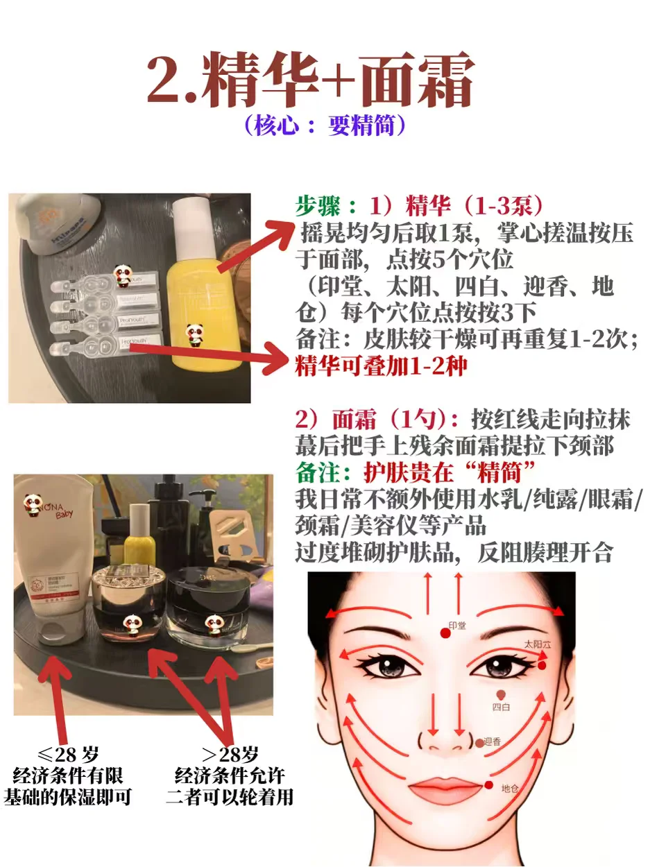 👆2)护脸:只用精华+面霜,依“5点法”