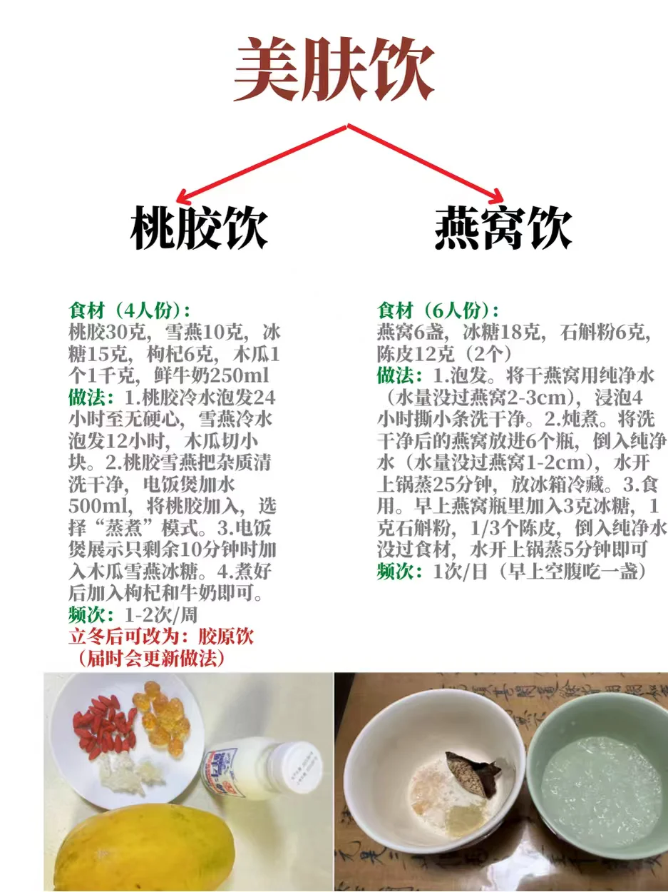 🌹2)美肤饮:桃胶饮(活X)+燕窝饮(滋阴