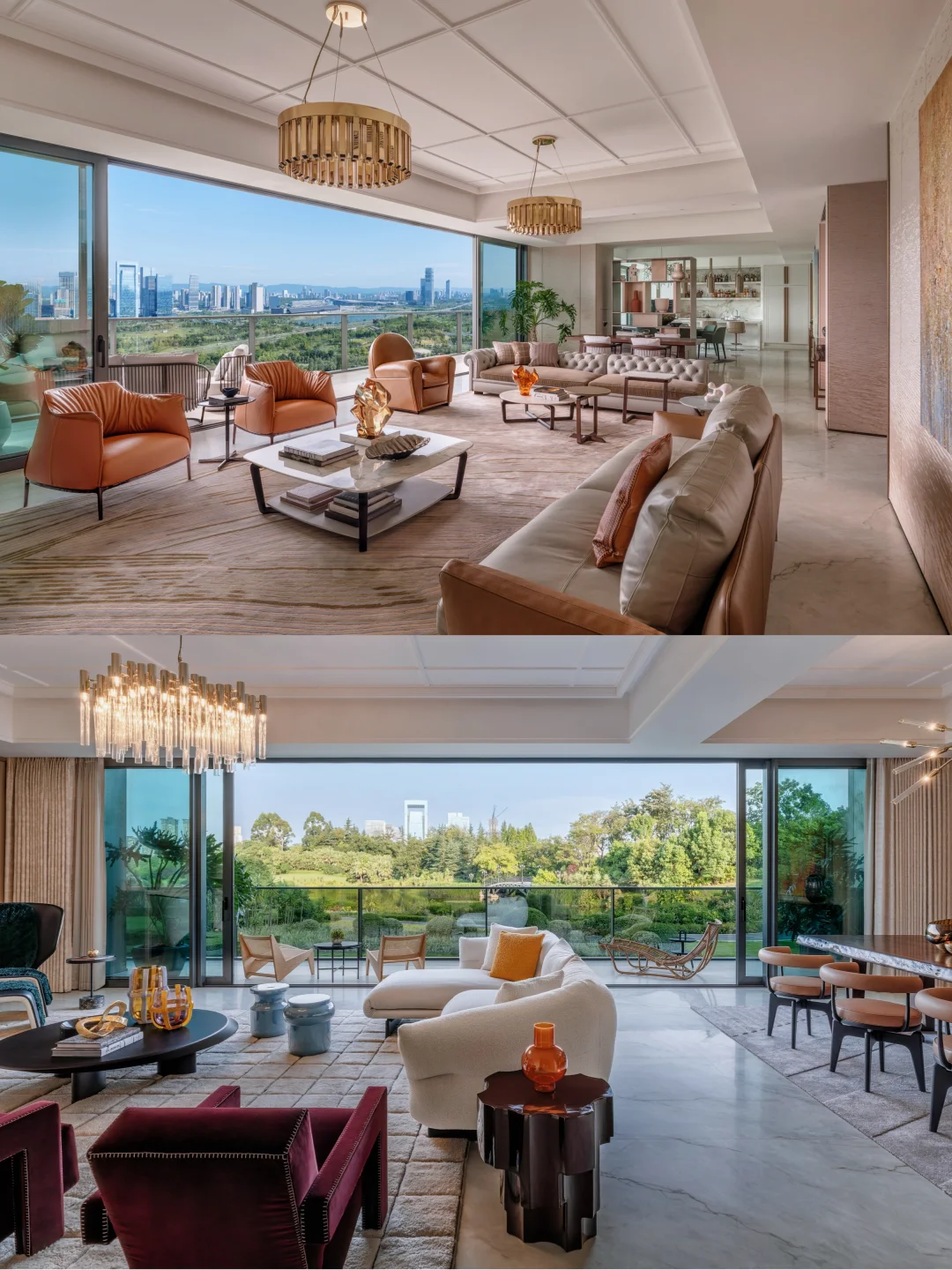 325平和650平大宅样板间,16公里无遮挡的视野太打动对隐私有极高要求的i人了。客厅落地窗把窗外的绿意框成流动的画,开放式厨房连着景观台,细节里藏着对生活的妥帖考量。