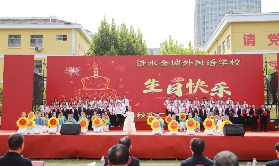金秋时节,硕果飘香。近日,涟水金城外国语学校迎来二十岁生日。校园内彩旗飘扬,喜气洋洋。建校二十周年暨高质量发展大会在操场举行。上午八点三十分,伴着庄严雄壮的国歌声,学校二十周年校庆大会正式拉开帷幕。随后,大会对为学校发展作出突出贡献的个人进行了表彰。文艺演出将庆典推向最高潮。最后,全场齐唱《生日快乐》与《明天会更好》。激昂的歌声是对学校的美好祝福,也承载着对未来的殷切期盼。
