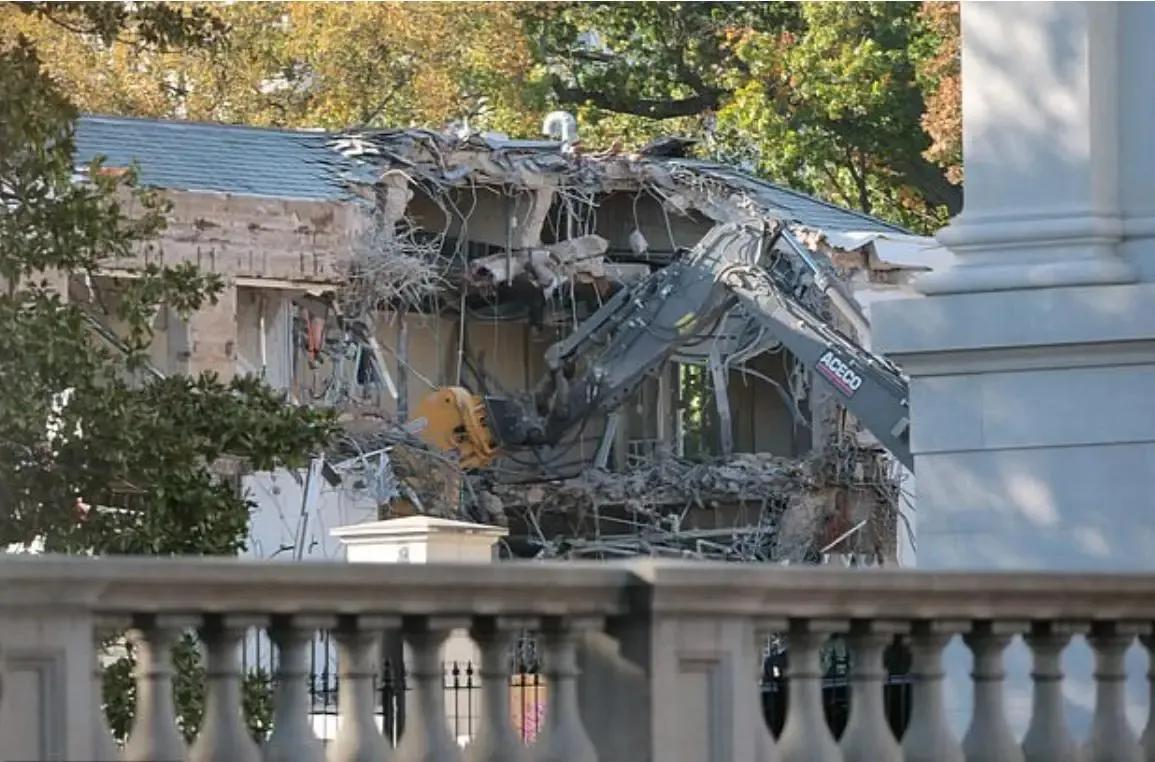 地产商出身的美国总统老特的施工队进入白宫,毫不客气地用挖掘机将白宫东翼已有123年历史的建筑墙体推倒,开始进行老特的大规模改造工程。 白宫东翼是由美国第26任总统西奥多·罗斯福于1902年建立,后经过多次改建,特别是在1942年增加了第二层,成为当时美国第一夫人埃莉诺·罗斯福及其工作人员的办公室。这座建筑不仅见证了多位总统和第一夫人的历史,也一直承担着第一夫人办公室的功能。但是现在,老特的挖掘机让这一切不复存在。 老特之前说要把白宫东翼改造为豪华宴会厅,耗资2.5亿美元。当时老特说改造工程不会对原有建筑造成影响,白宫新闻秘书莱维特也曾在新闻发布会上表示,宴会厅将建设在东翼旁边,绝不会破坏原有建筑。但是工程开工后,施工队干的第一件事就是把白宫东翼拆除。 新的宴会厅将占地8300多平方米,预计可容纳大约1000位宾客。有了这个新的宴会厅,以后在白宫宴请宾客就不用在南草坪上临时搭帐篷了。设计效果图淋漓尽致显示了老特的土豪特征,一片金色,十分奢华。 老特当这届美国总统,不是“让美国再次伟大”,而是任性折腾,给自己家族使劲捞钱。对白宫东翼进行改造,老特的施工队能赚一笔,况且改造费用也不是老特掏腰包,而是老特从美国一票富豪那儿进行募捐,实际上就是强制捐款。
