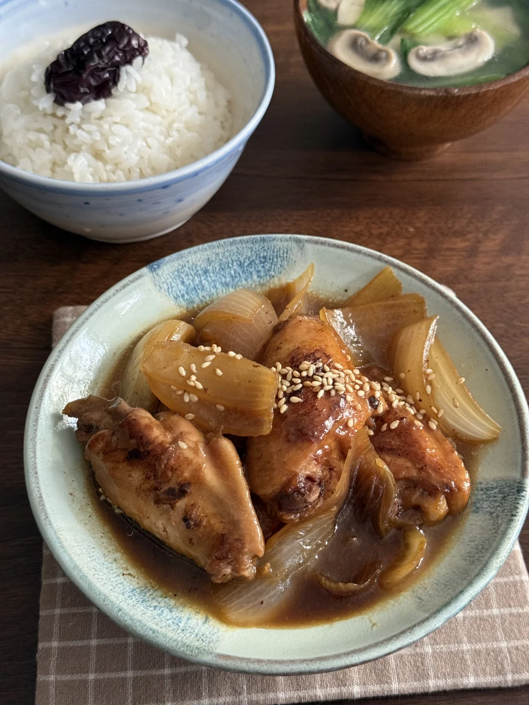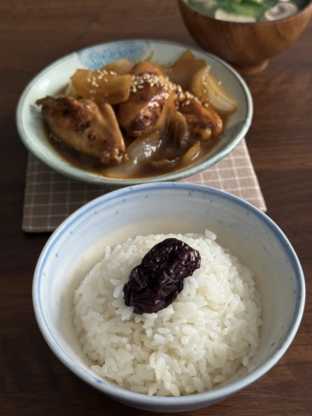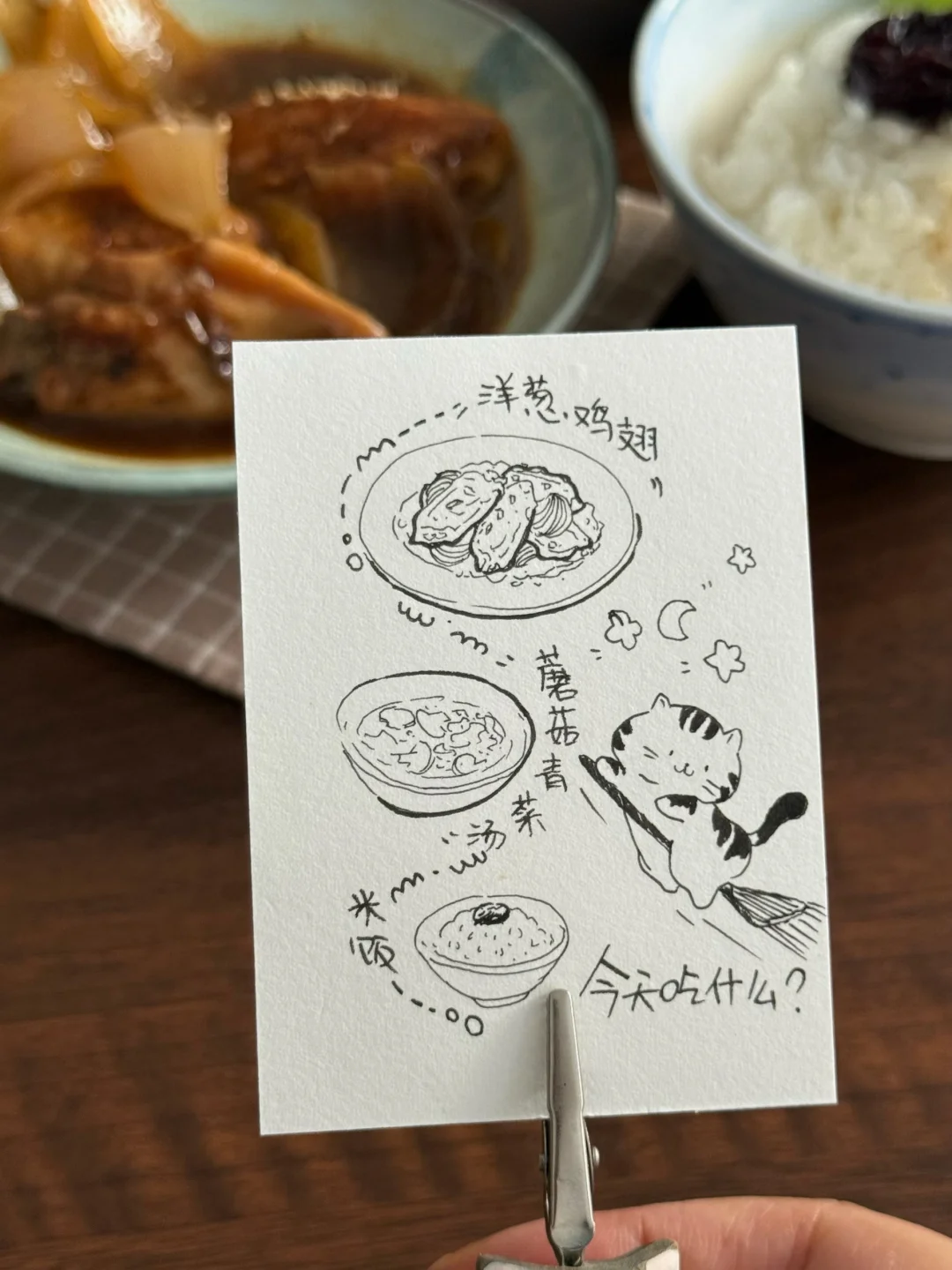 今日一人餐:洋葱鸡翅,蘑菇青菜汤,米饭 今天用半颗洋葱解锁了鸡翅烧法!不加糖,鸡翅烧好会带着洋葱的甜。 煮米饭的时候放颗红枣,别小看一颗枣,打开锅盖就能有一阵枣香! 再配一碗蘑菇青菜汤,就是蘑菇青菜汤,有蘑菇有青菜还有汤……[自拍R]