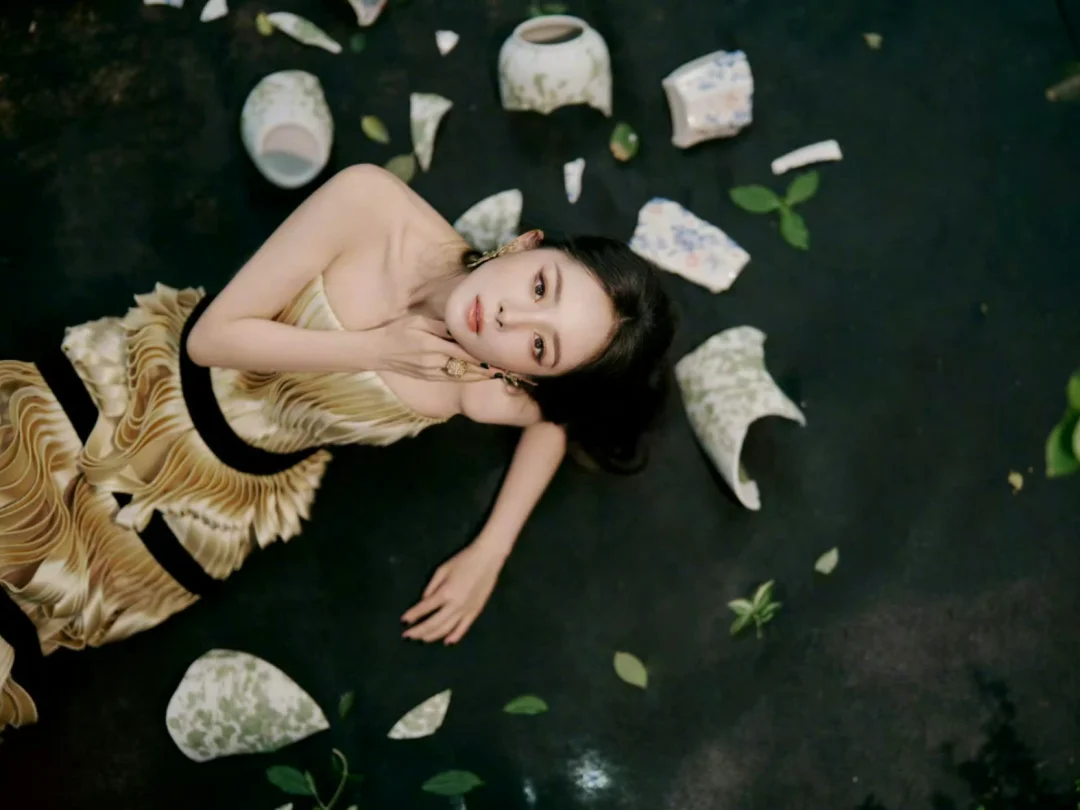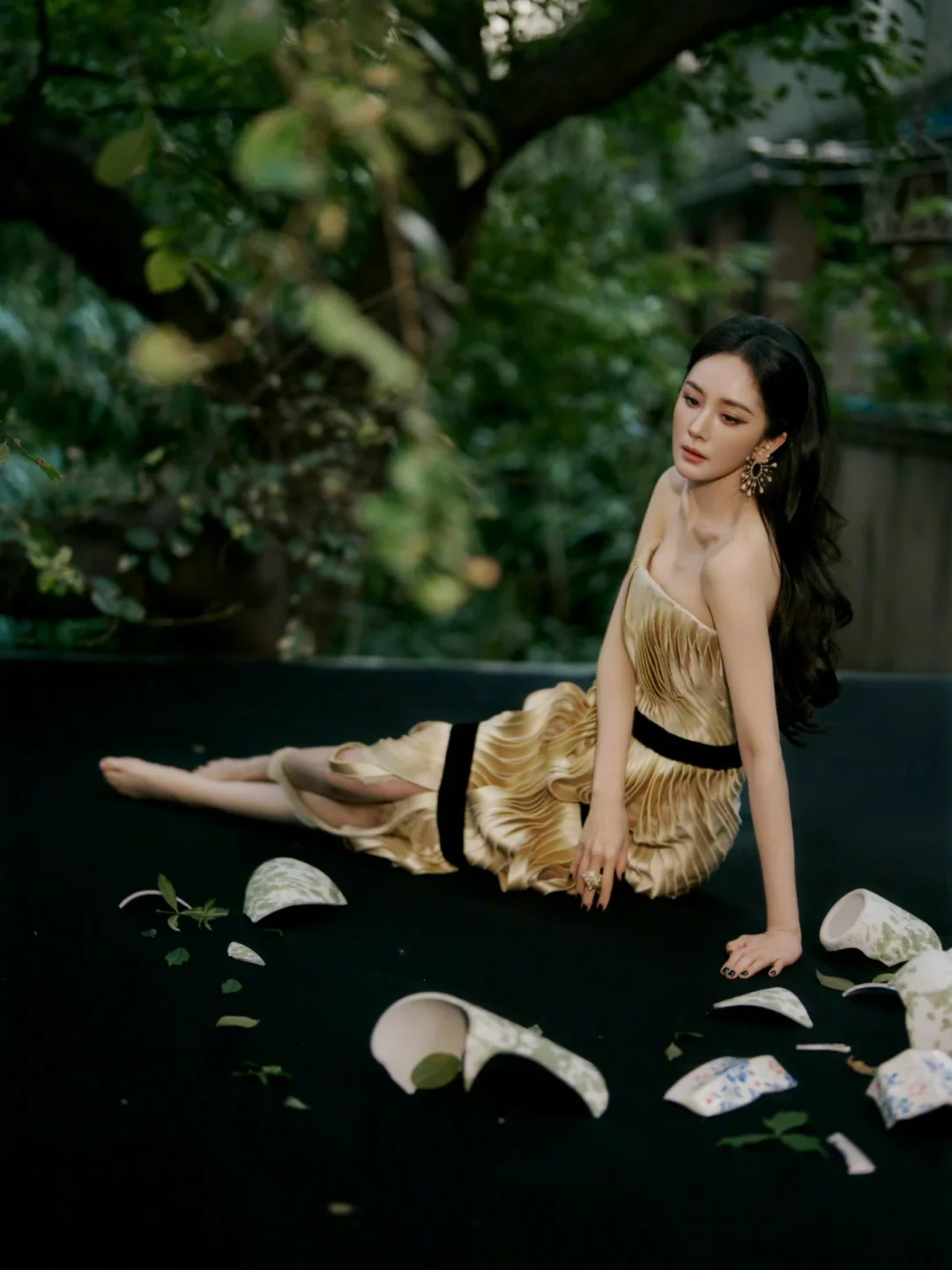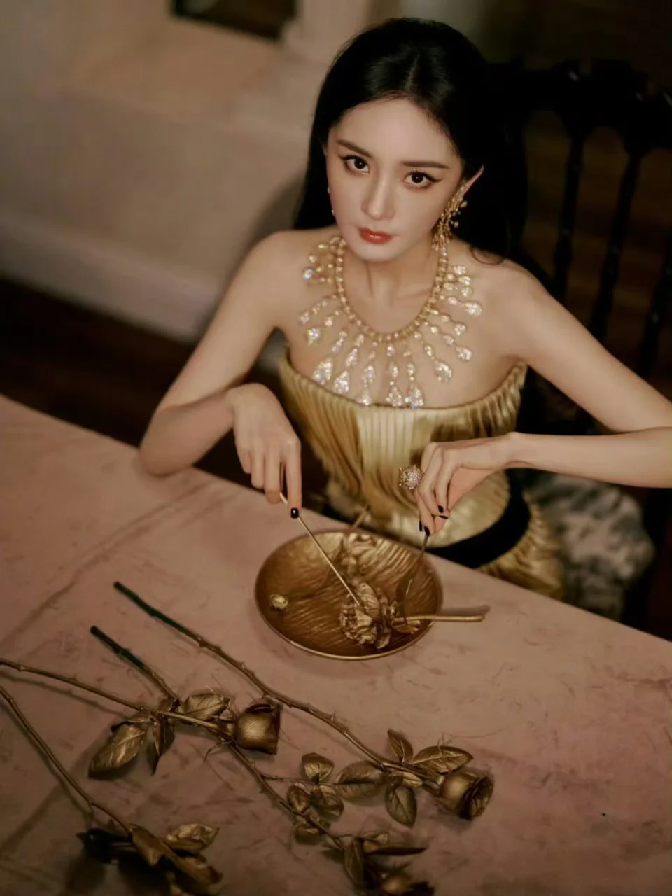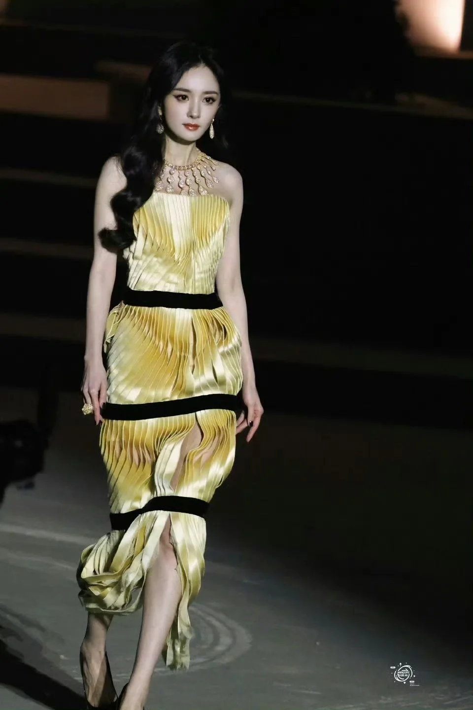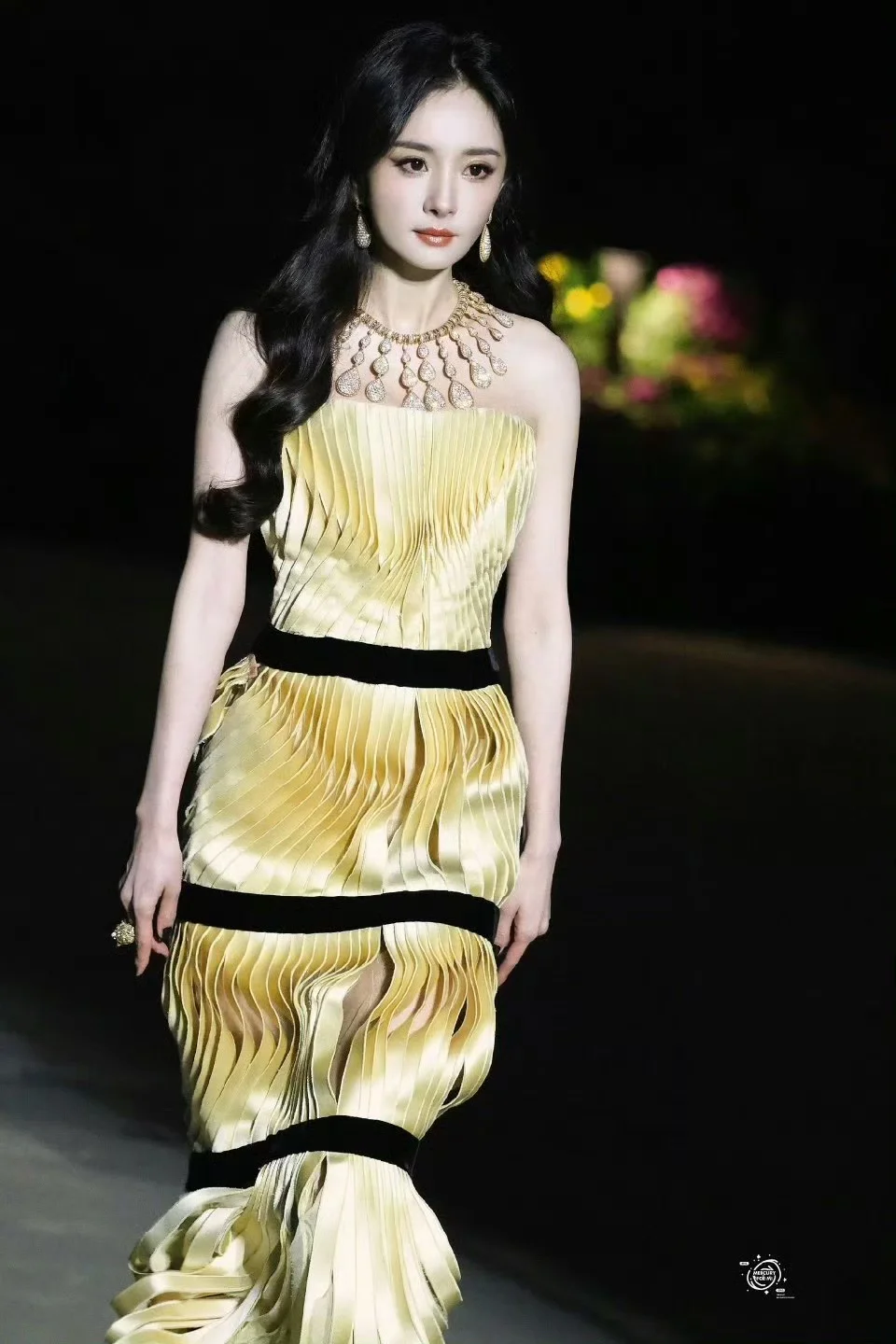 杨颖这身“叶脉”礼服太绝了!立体剪裁像把森林穿在身上,不管是短款的灵动还是长款的