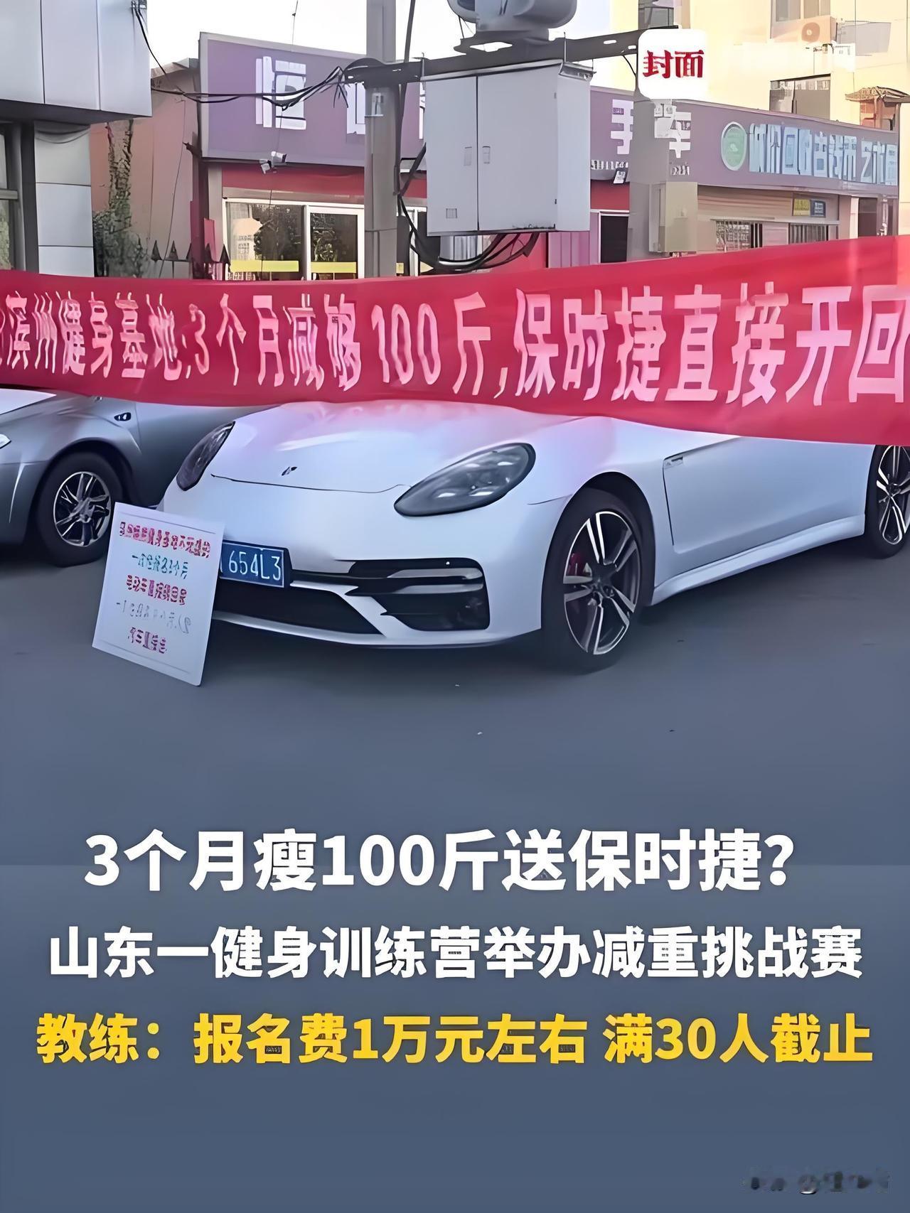 山东,一家健身房推出个“狠活动”,交1万块报名费,包吃包住,参加3个月全封闭式训练,只要能瘦够100斤以上,就送一辆保时捷帕拉梅拉。 教练说活动是真的,不过车是老板开了好几年的旧车,不是全新的,现在已经有七八个人报名了,报满30人就截止,只要达标肯定给车。 最关键的问题是3个月瘦100斤,身体顶得住吗?健康减重的速度最多是每周1-2斤,3个月撑死也就瘦30来斤。要想瘦100斤,平均每个月得掉33斤,这难度系数不是一般的大。 算笔账,30人报名就能收30万报名费,而且那辆二手帕拉梅拉的钱可能都没这么多。更关键的是,几乎没人能达标,健身房基本稳赚不赔。 有网友觉得这根本不现实,明显是噱头,健身房就赌没人能达标,纯赚报名费。也有网友觉得诱惑力确实大,能逼自己自律一把,主要还是想减肥。 保时捷再贵,也比不上身体健康值钱。减肥没有捷径,不管是为了好看还是健康,都要靠慢慢调整饮食,规律运动,循序渐进地调整。 减重成功的关键是长期坚持,就算靠极端方式短期达标,体重也极易反弹,还会留下一身伤病 。 所以不要被高额奖励冲昏了头脑,要以健康为重,选择科学合理的减肥方式。