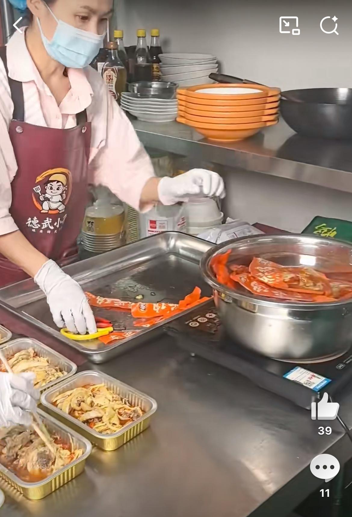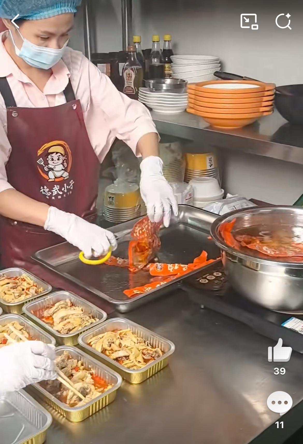 这就是各位俊男靓女不想做饭,老板懒得炒菜的大型外卖制作现场,你们点的鱼香肉丝、红烧肉、辣子鸡,鱼香茄子、外婆菜、农家小炒肉、酸笋肉丝、小炒鸡杂、红烧鸡块、油煎鱼块,只要你们想吃的菜都有。老板正在烧水加热,装盒,外卖骑手正在赶来送餐。你们拿到餐,吃的津津有味,还在讨论是咸了,还是辣了。饭店外卖 外卖餐食