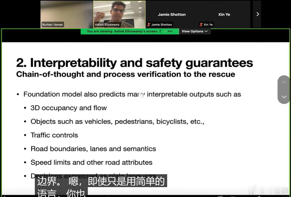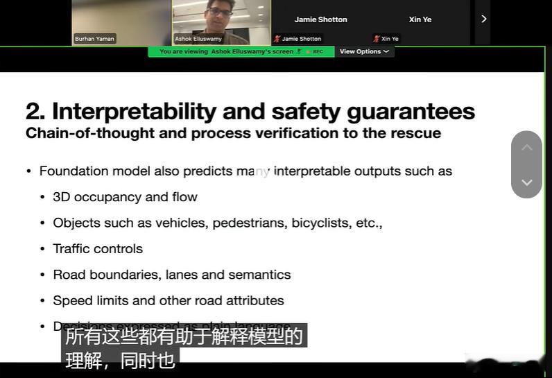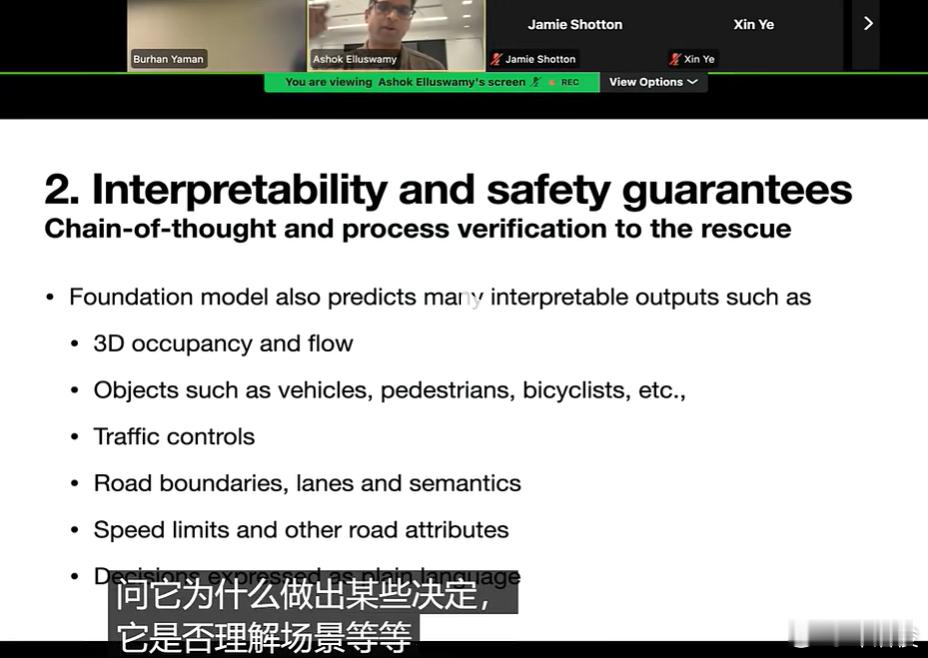 Ashok 阿肖克·埃卢斯瓦米(Ashok Elluswamy,特斯拉AI副总裁)在ICCV上的演讲中,提到了端到端的模型是如何监测其过程,并且保证安全性的。