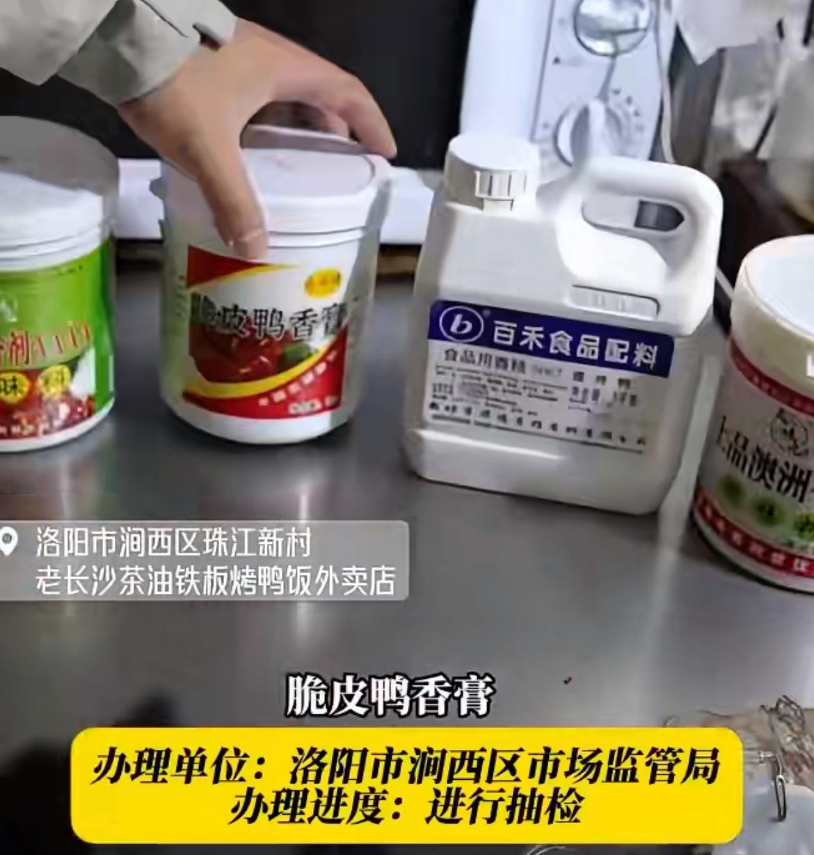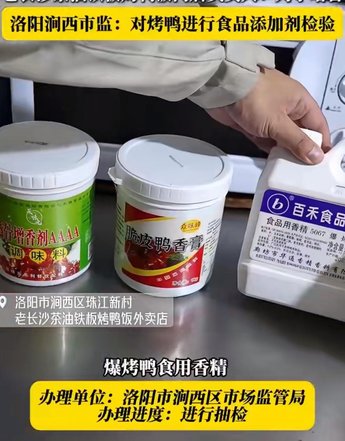 一只烤鸭7种科技狠活,包块透骨增香膏、脆皮鸭香膏、爆烤鸭食用香精、上品澳洲牛膏、浓香土鸡宝、肉香王、乙基增香剂(乙基麦芽酚),把这些调料混合到一起用到烤鸭上,这烤鸭味道能不好吗,简直香迷糊了。洛阳市监对一家老长沙茶油铁板烤鸭饭店后厨进行检查,发现了大量调料,老板说,这些调料都是调配后使用。这些调料虽然吃了一下子不会出事,但是日积月累谁知道啥情况,还是自己做饭吧,虽然原料也不是很放心,但是调料至少没那么狠。御品茶油烤鸭 烤鸭调料 烤鸭风味 烤鸭法则