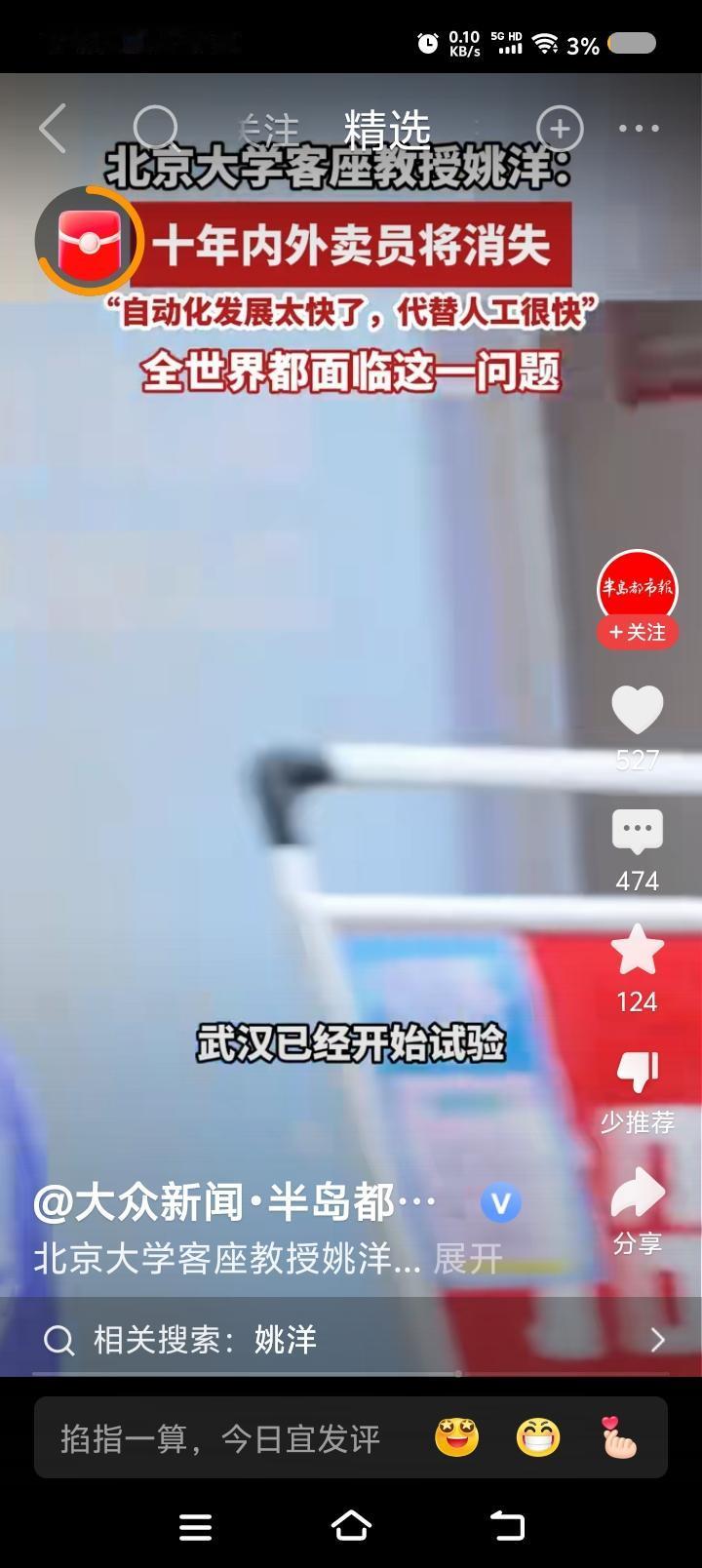 外卖小哥会消失么?—— 据报道,某教授认为:“外卖小哥很有可能被替代。武汉已开始了出租车无人驾驶尝试。自动化发展太快了,全世界都面临这个问题。” 点评: 有部日剧,某城市街上都是仿真机器人。真人在一个大型的实验室躺平、做梦,插上仪器。