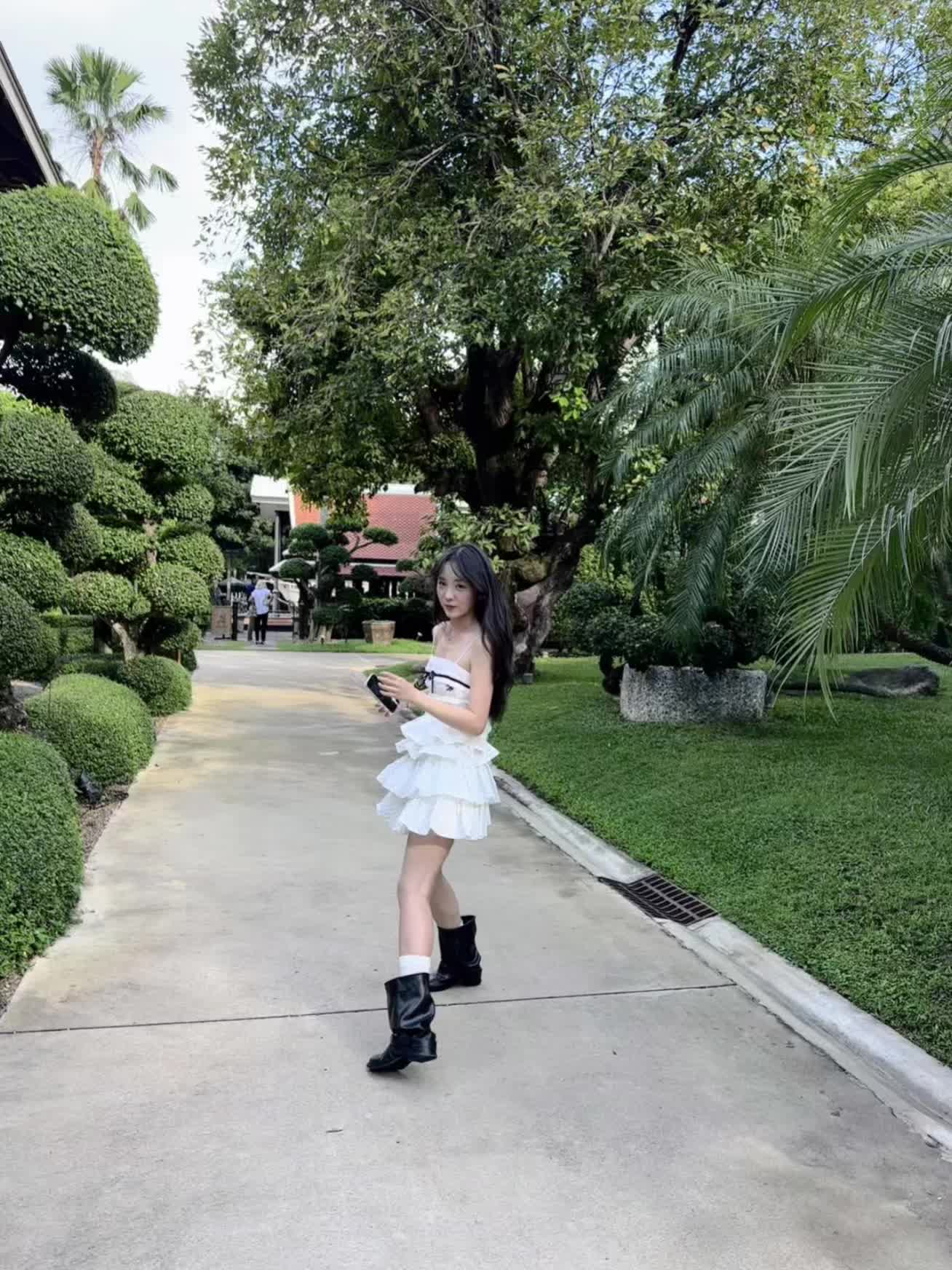 白衫是薄瓷的容器盛着心跳与呼吸绿裤是柔韧的藤缠裹着骨骼的倔强~柳丝拂