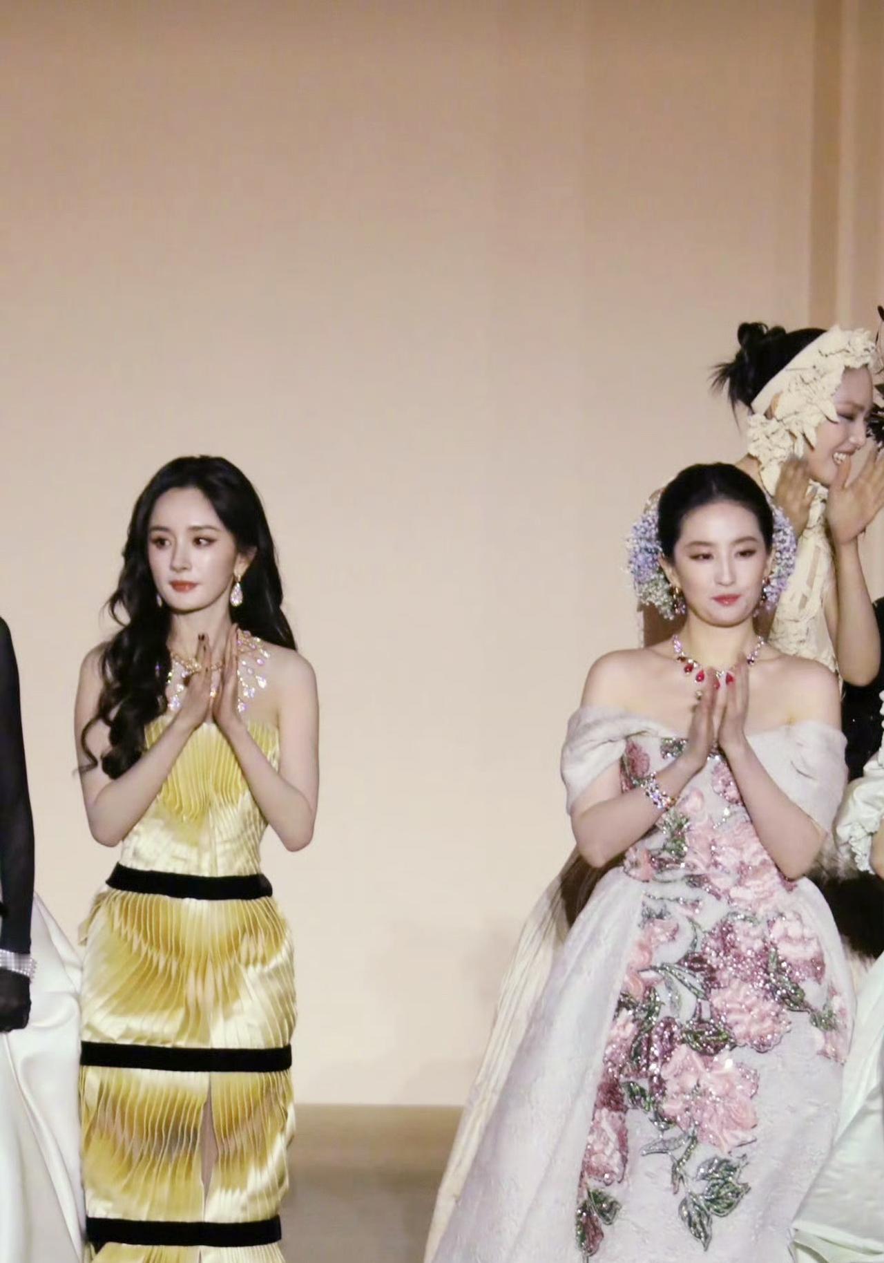 VOGUE活动大合影太抓马!杨幂、刘亦菲左右分立,中间的刘冲(杂志主编)像被夹在