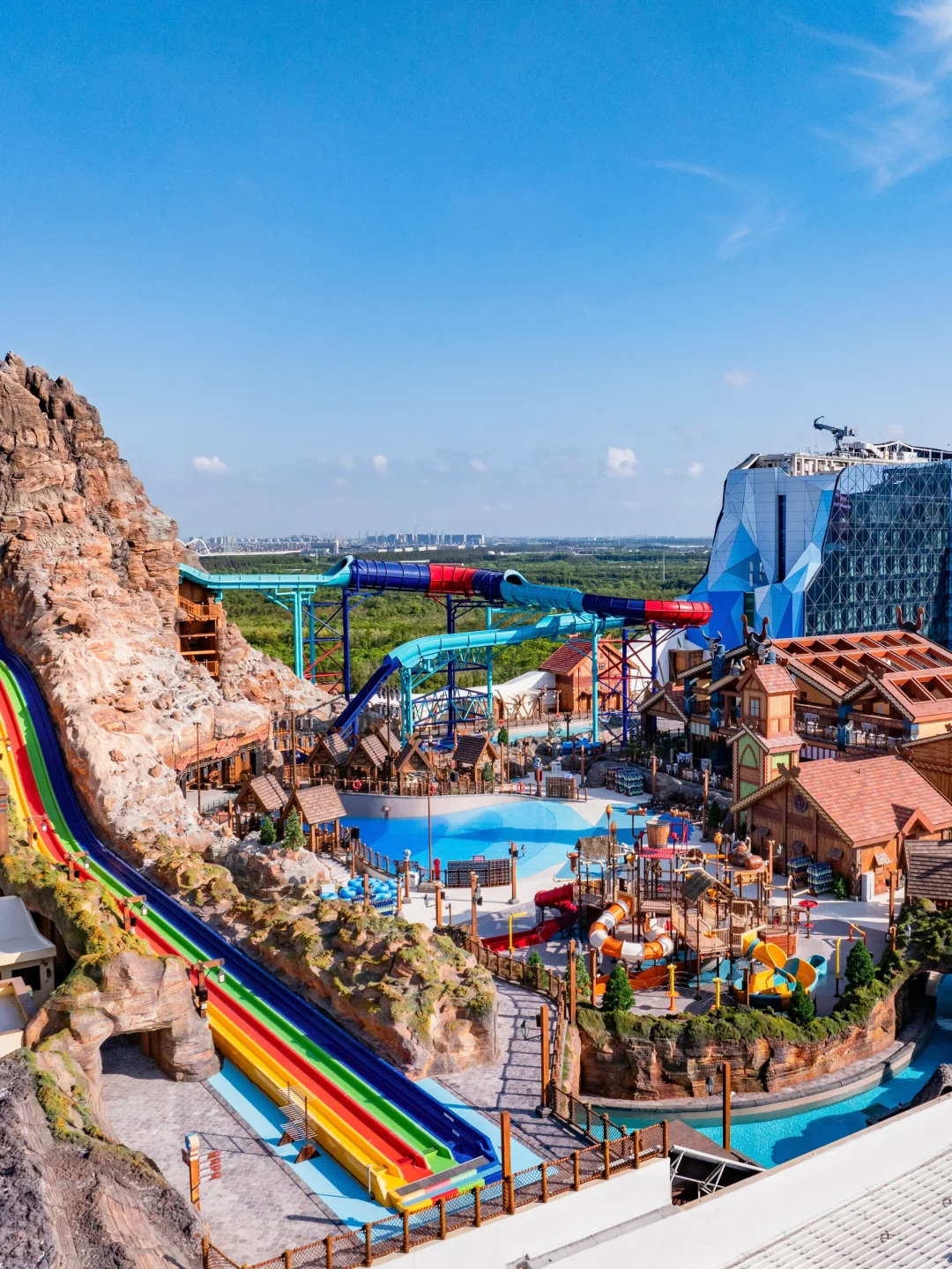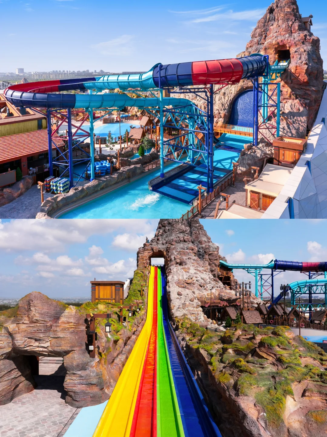 🔹 26根水滑道2根穿层水滑道、1根室外悬空水滑道,国内少有的穿层水滑道