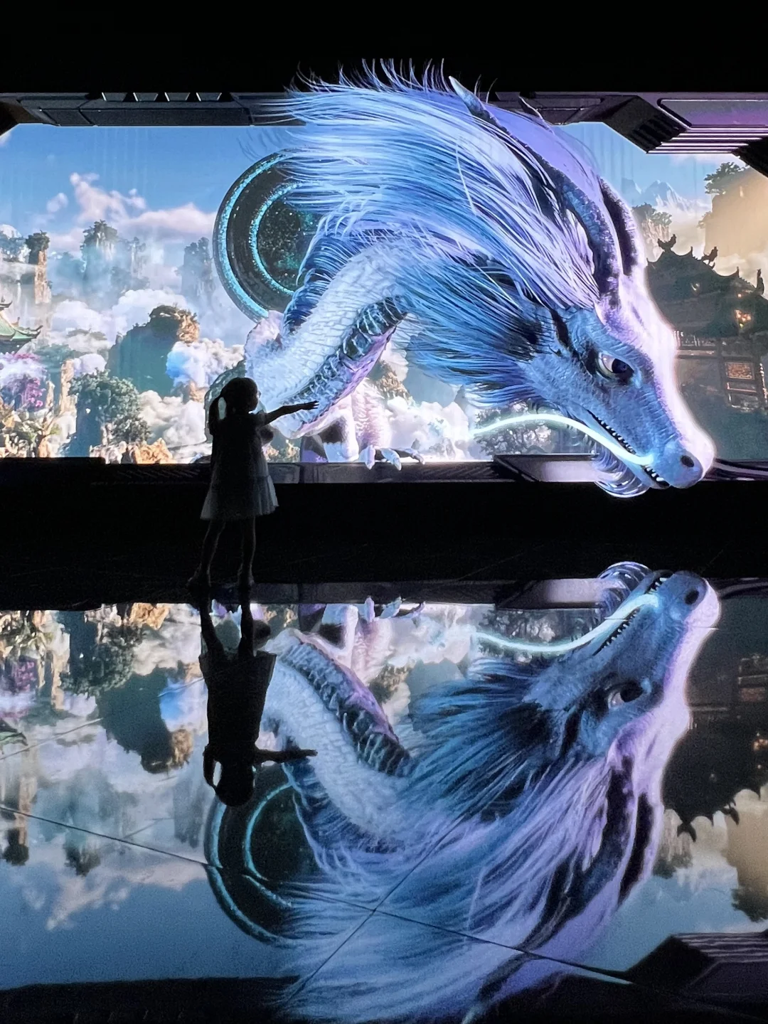 🔹全球首个以《山海经》神兽为主题的沉浸式裸眼 3D艺术展,XR屏效果绝了,烛龙直接飞出大屏,📷超出片