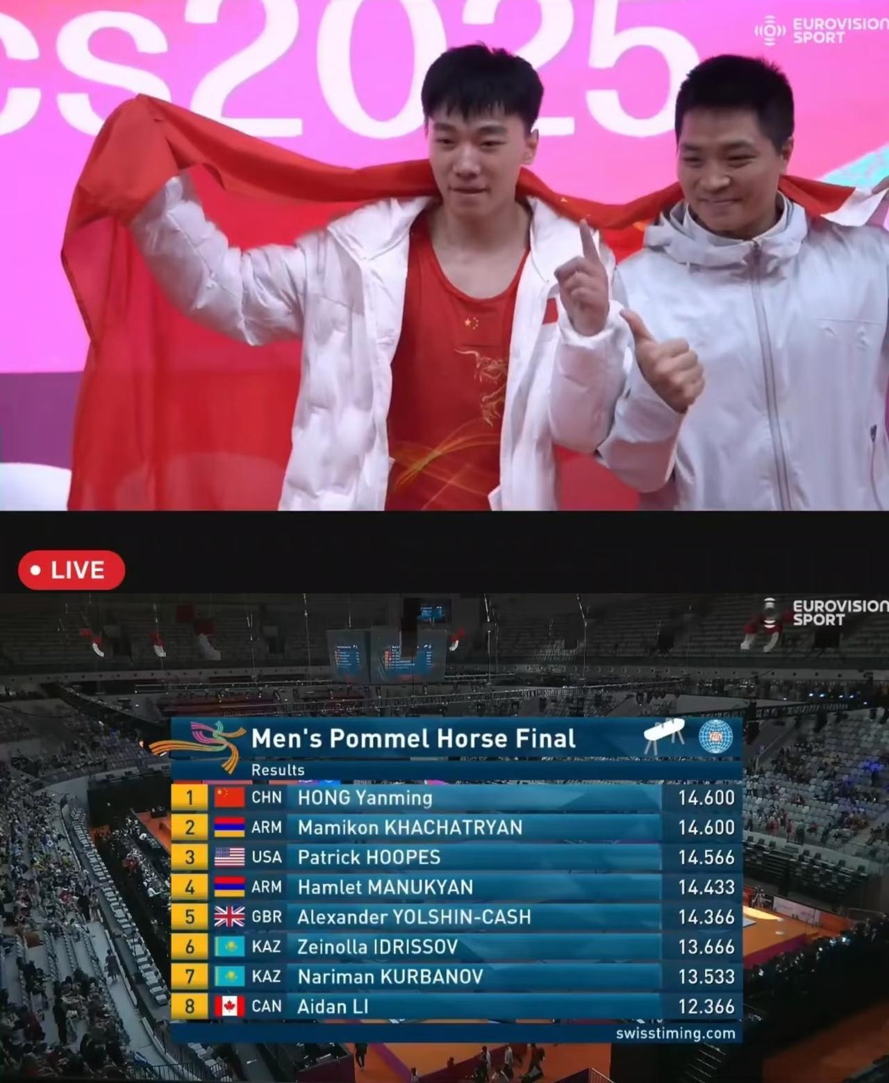 恭喜小将洪延明!上墙!!!🥇 亚美尼亚的小将,好强,还好我们完成分优质! 这也是多少年了,鞍马终于有金牌了。