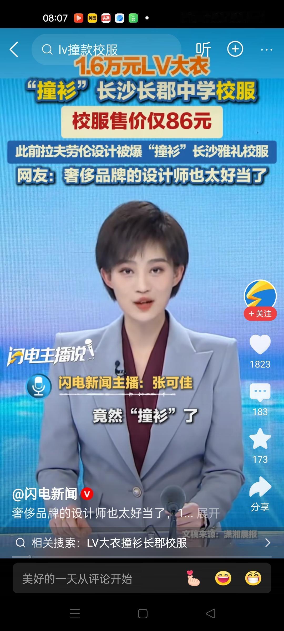 Lv的设计师已经没有灵感了,设计的新款男士上衣竟然抄袭长沙长郡中学的校服。 主要是价格售价高达1.6万,校服才卖86,可能有喷子说材料和工艺好,但是你穿的路上撞衫好意思吗? [呲牙]