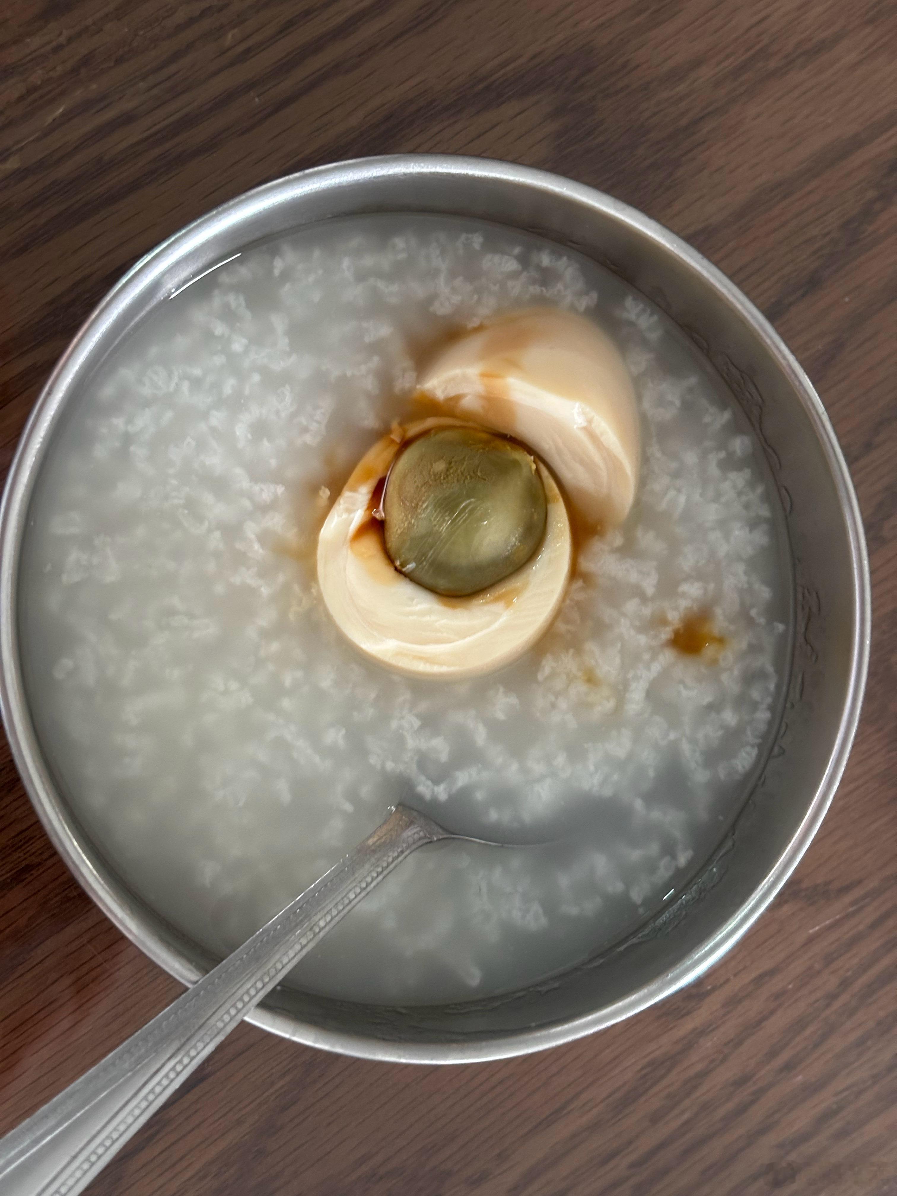 今天的早点是粥,鸡蛋;昨天留下来的榴莲披萨和山姆的榴莲糕点;热量都爆了吧。