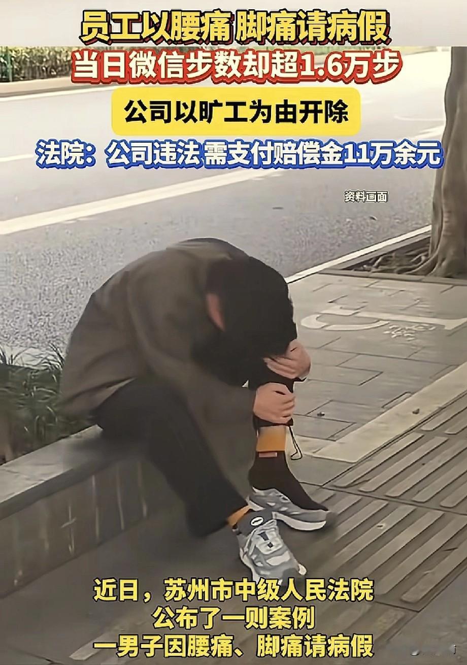 江苏,男子因为脚疼请病假,但公司发现他请假当日的微信步数高达1.6万步,觉得男子是“泡病假”,以旷工为由辞退了男子,男子不服,将公司告上法院。 男子上班时扭伤了腰,请假休息了一个星期后来上了两天班,说腰又痛了,又请假休息了10天。 然后他来上了半天班,中午就说脚又开始疼,又跟经理请假,还去医院开了“右足疼痛”的诊断证明。 没想到,公司查了男子当天的微信步数,有16949步,还调了监控,说看见他跑步进厂、步行出厂。几天后直接给男子发了开除通知。 男子觉得很冤,他拿出了完整的看病记录,从腰伤到后来确诊的“跟骨骨刺”,两家医院都有诊断,还有腰椎CT、足部拍片这些检查报告。 至于1.6万步,他解释说,脚疼不代表完全不能动,当天要回宿舍拿东西、处理工作交接,还要去医院复诊、给家人办事,都是忍着疼在走。 最后法院判决公司是违法开除,赔偿男子118779元。 有网友觉得公司管得太宽,请假了难道就得在床上躺着,连门都不能出?还有人说步数这东西根本不准,有很多影响因素,凭这定罪也太草率了。 公司既不沟通也不核实,直接用监控和步数给员工“定罪”,本质就是不想费心思管理,只想用简单粗暴的方式解决。 真正的管理不应该靠监控和猜忌,而是该讲规矩的时候讲规矩,该讲人情的时候讲人情。