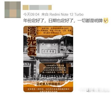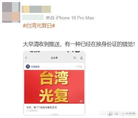 问一下,你们收到推送了没?[大笑] 据说,有一种换身份证的美好感觉?没有这种感觉的,要好好提高觉悟了! 另外,赖清德上了时代周刊,美国人很生气,他们说必须警惕这个鲁莽的人。 台湾光复纪念日的到来,表明台湾自古以来就是中国领土不可分割的一部分。赖清德当局要看到,美国最终不会给你们好果子吃的,你的身份证有效期快到了![比心]