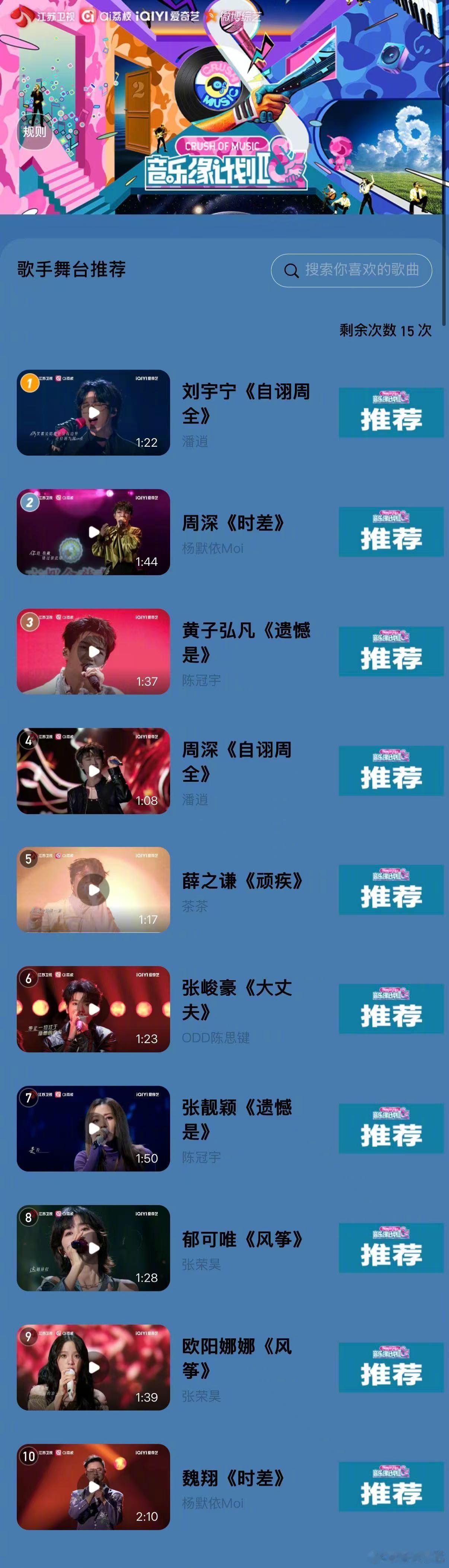 音乐缘计划单曲推荐第二季歌曲推荐活动火热开启!快来为你心中的宝藏金曲打call,助力歌曲热度吧~