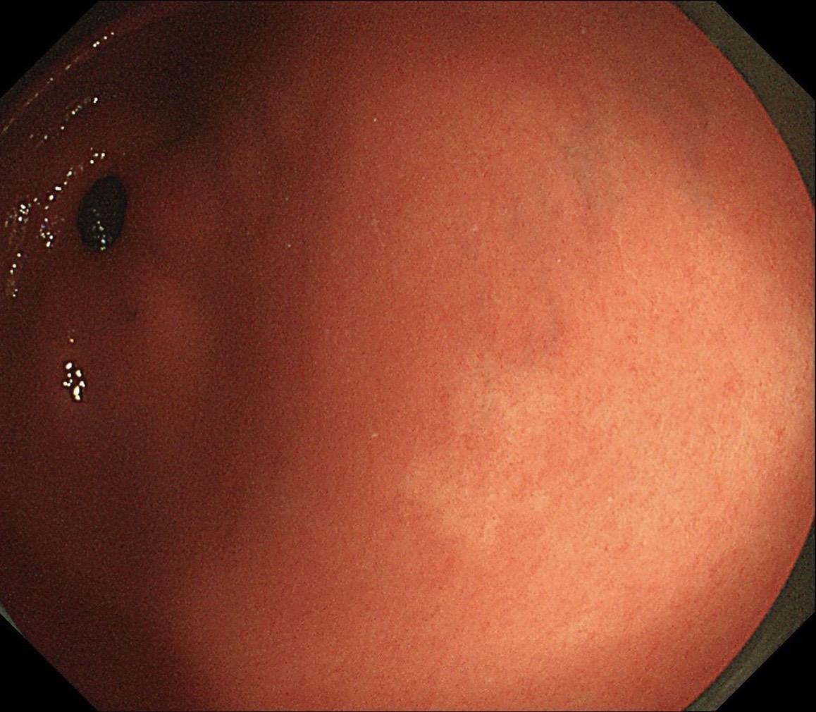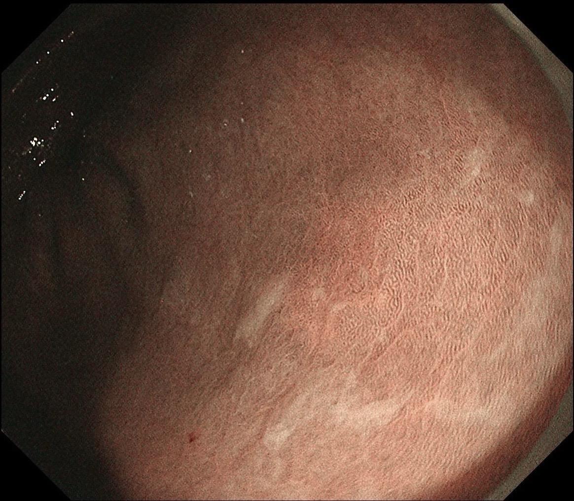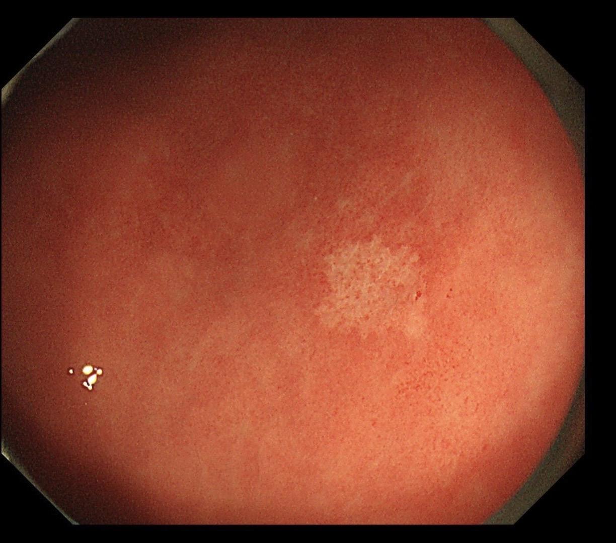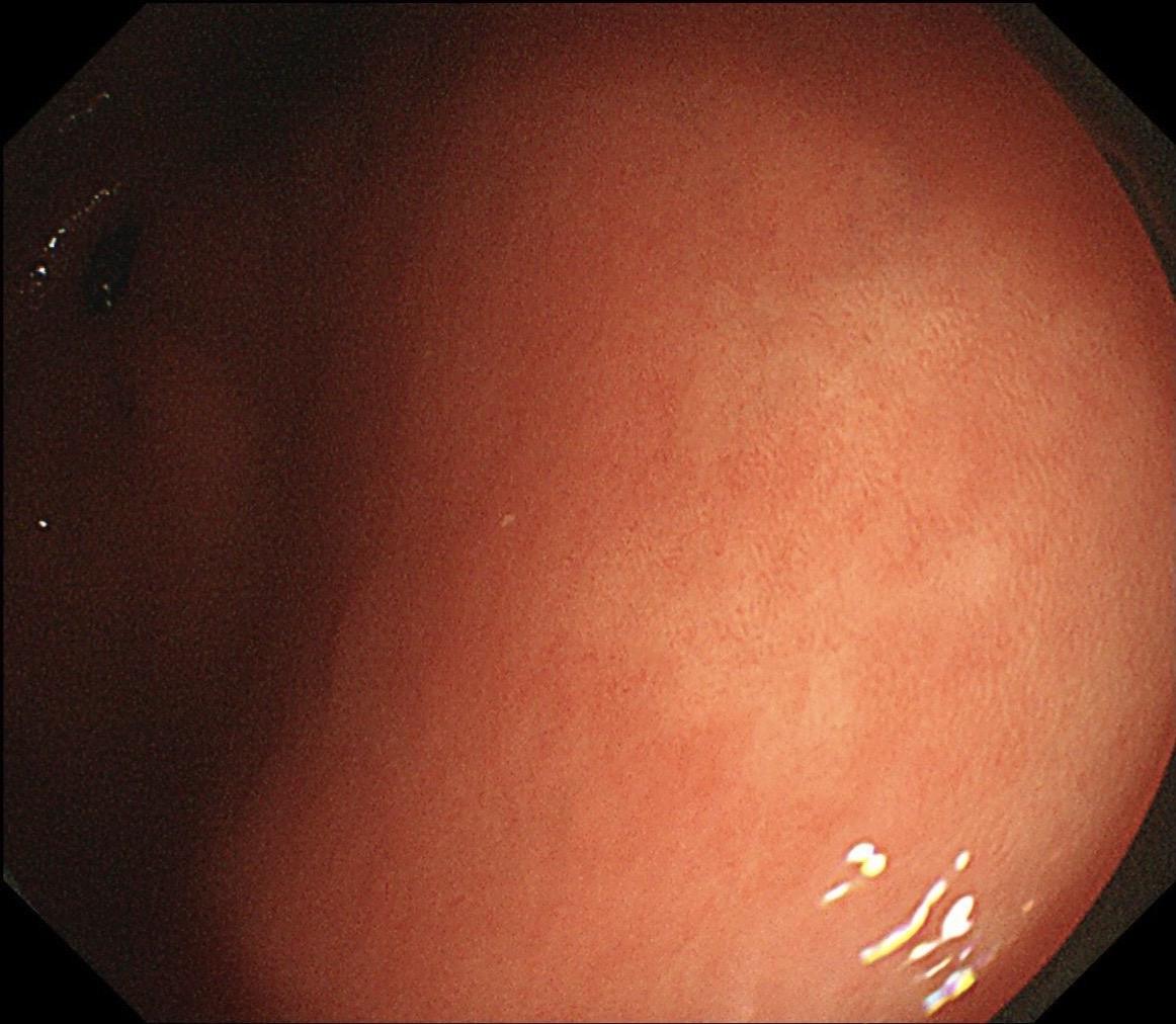 男,40岁,胃双发褪色调病变。慢性胃炎复查,3年前胃镜未见异常,Hp阳...