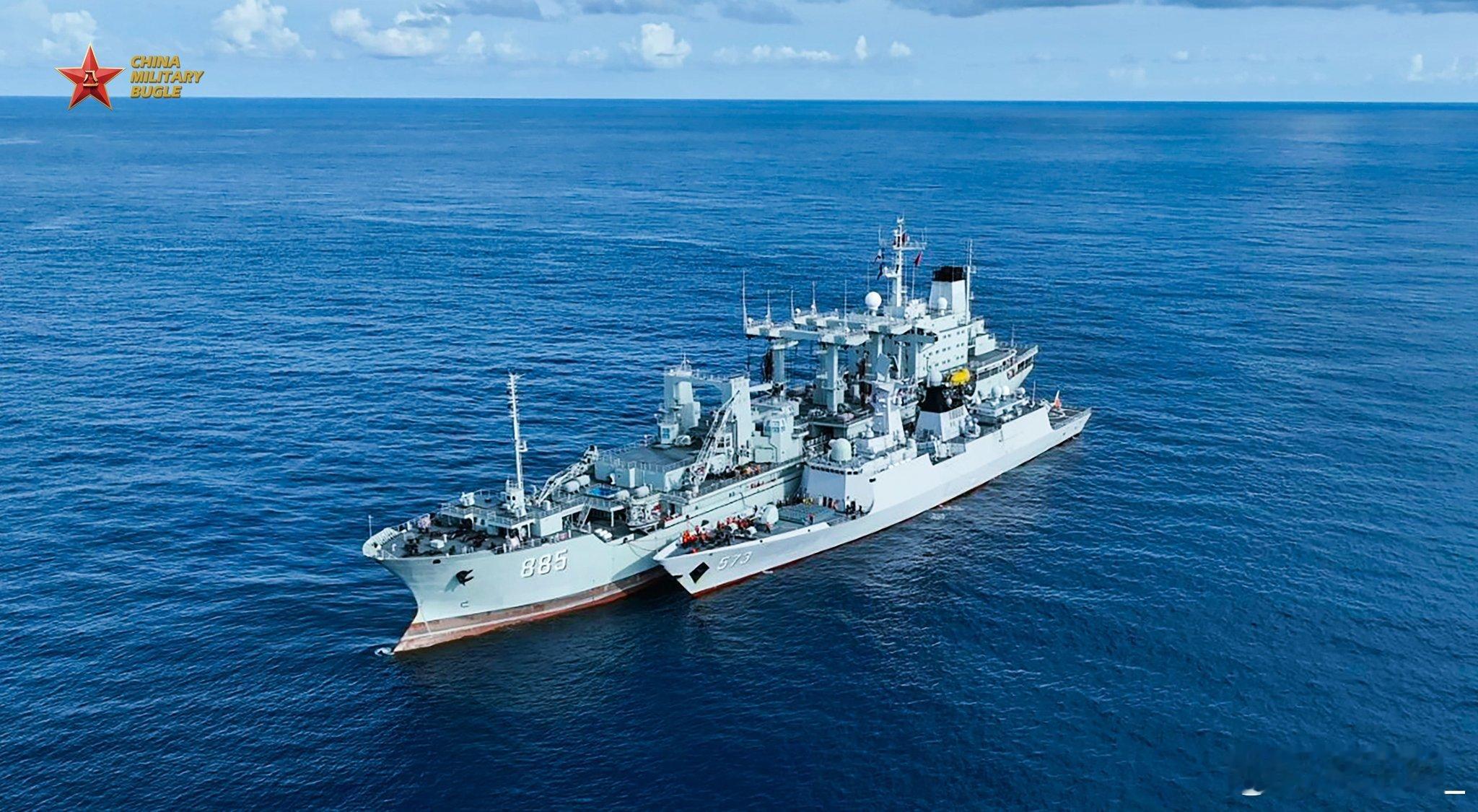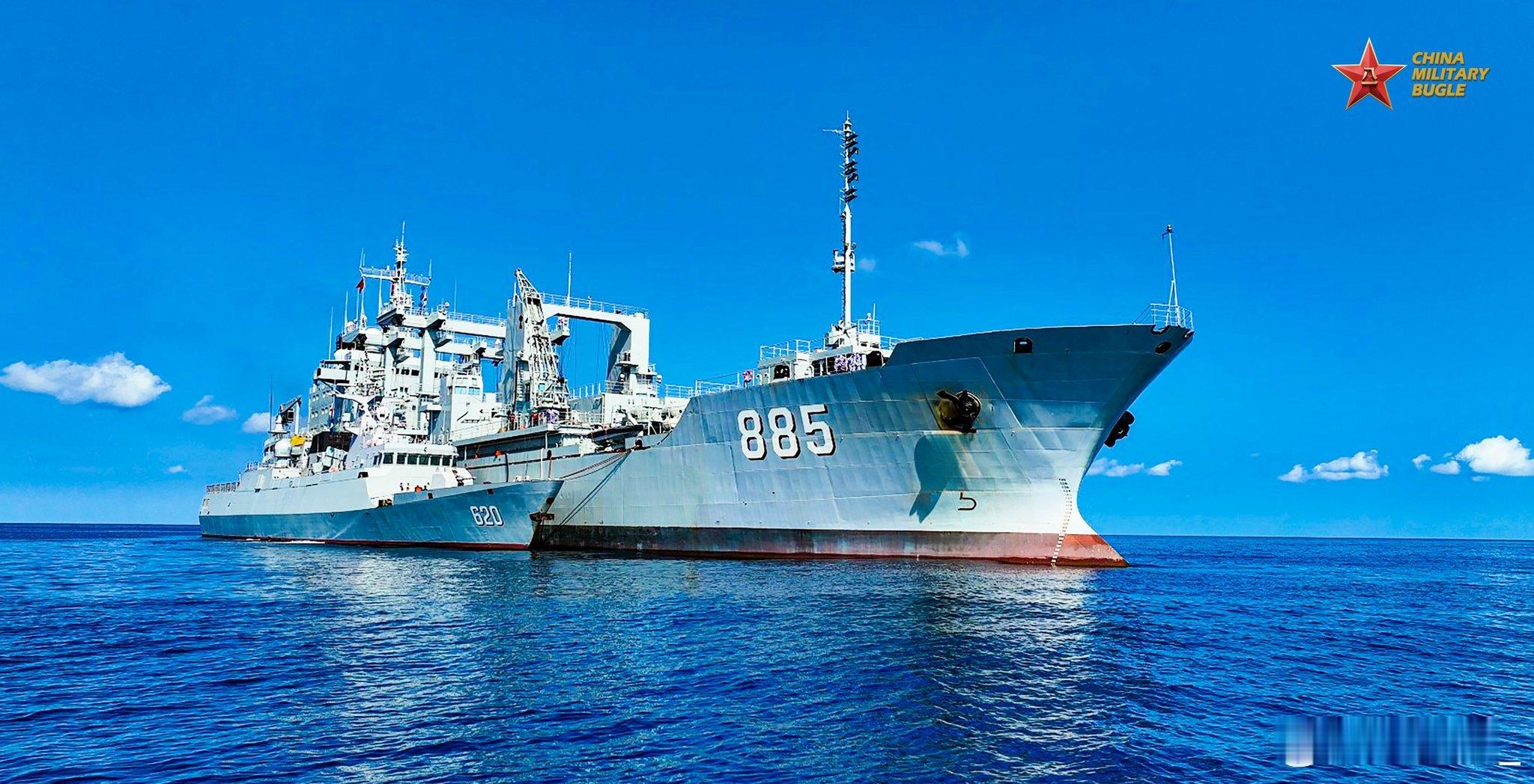 885青海湖舰与573柳州舰、620赣州舰在海上靠泊: