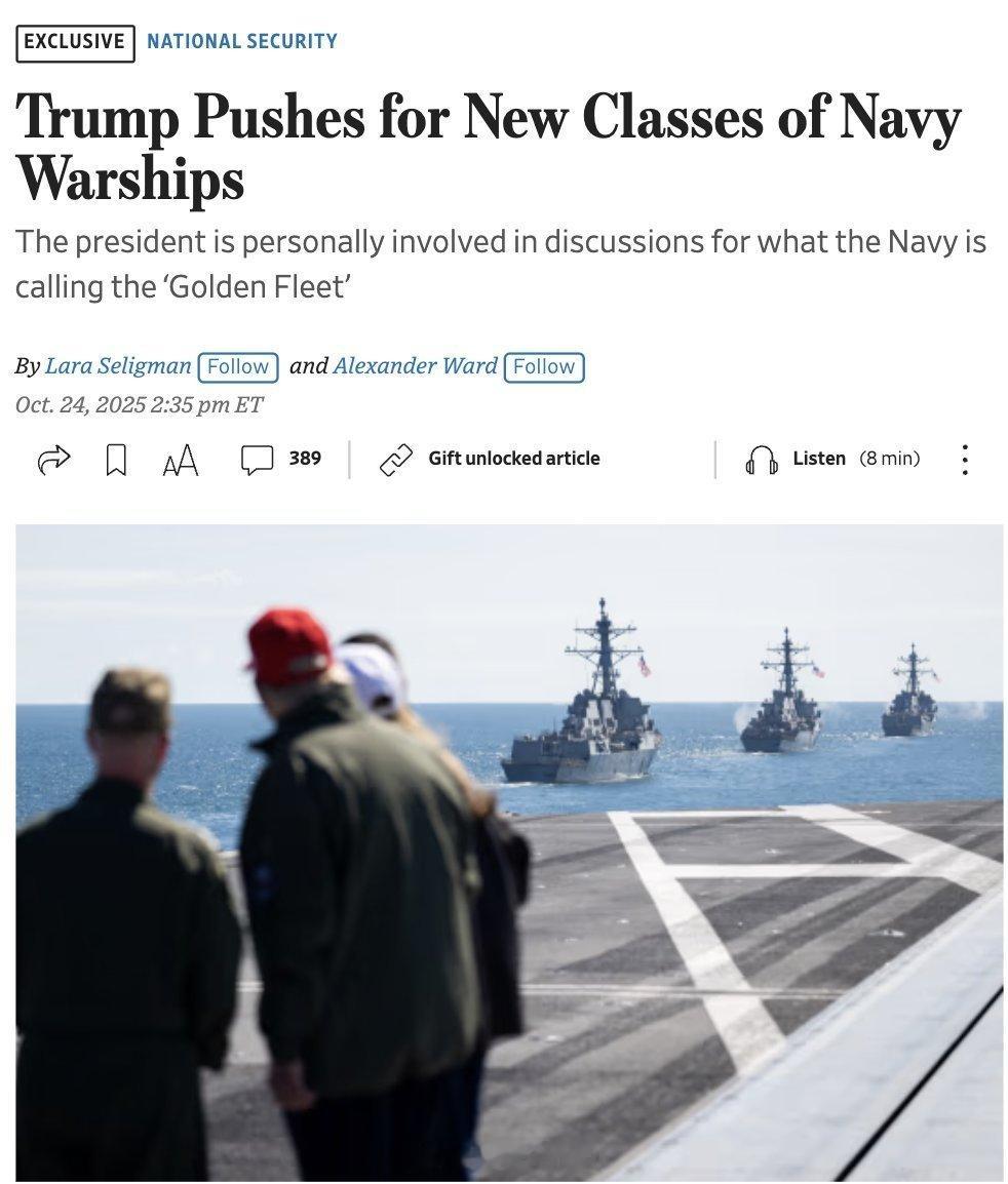 特朗普推动研发新型海军战舰华尔街日报:特朗普亲自指挥海军新“黄金舰队”的建设计划——该舰队由超大型、导弹重型战舰和小型轻型护卫舰组成。拟议中的旗舰是一艘排水量1.5万至2万吨的下一代舰艇,可携带高超音速导弹。