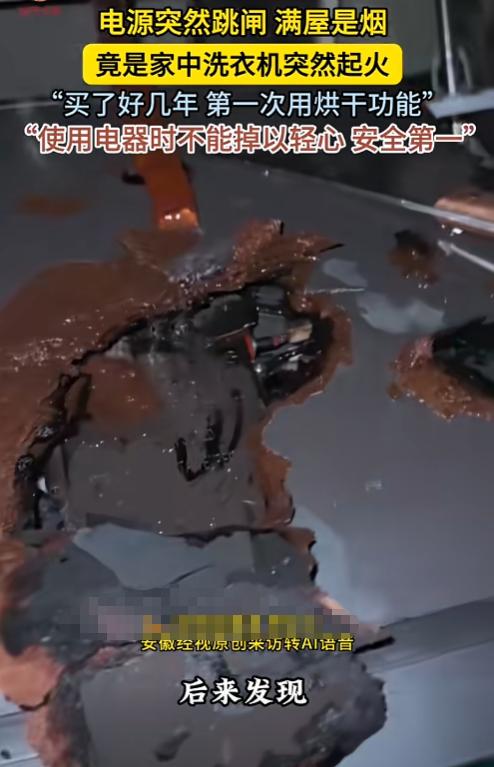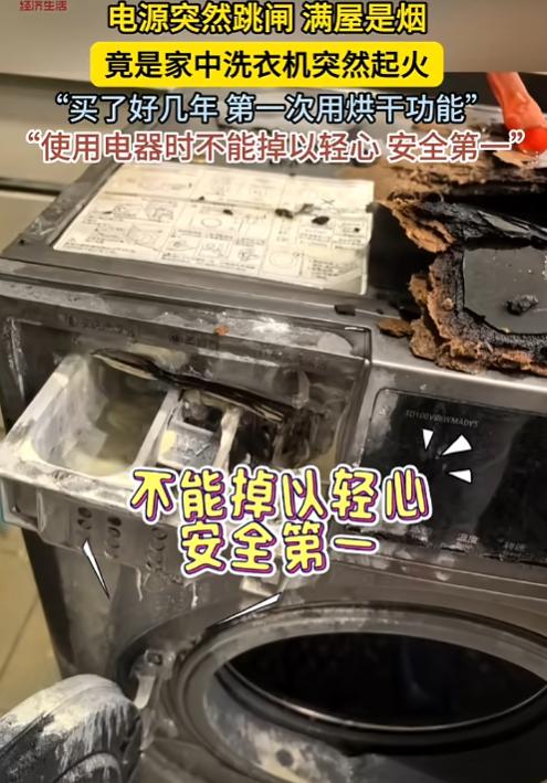 “防不胜防!”10月25日,四川成都,一女子深夜使用洗衣机的烘干功能烘衣物,谁知20分钟后家中突然跳闸,满屋子都是浓烟,洗衣机居然着火了!网友:这要是睡着了后果不堪设想! 我们日常使用的电器可能藏着安全隐患,因电器着火烧了整个家的惨案比比皆是,即使是一些每天都在使用的电器,也不能掉以轻心。 一女子家中的洗衣机买了几年,她从没有使用过洗衣机的烘干功能,这天晚上女子想尝试一下,于是,她将衣物放进洗衣机后按下了烘干的按键。 开启洗衣机后,女子就回到房间洗漱去了,大约过了20分钟,家里突然跳闸,女子来到客厅查看,却发现满屋都是烟。 意识到不对的女子赶紧寻找烟的来源,找了半天才发现是阳台的洗衣机着火导致的,女子和家人赶紧将洗衣机的电源拔下,用灭火器将洗衣机从头喷到尾。 一番操作后火被熄灭,洗衣机内部已经被烧得不成样子,一些地方露出烧糊的电线,现场一片狼藉,好在女子发现的比较及时,火没有烧起来,家中没有人受伤。 不少网友庆幸当时女子一家没睡着,要是开着洗衣机睡着了,那后果不堪设想,使用电器时千万不要掉以轻心,安全第一! 信息来源:《电源跳闸,满屋是烟,原来是家中的洗衣机着火了》AHTV第一时间