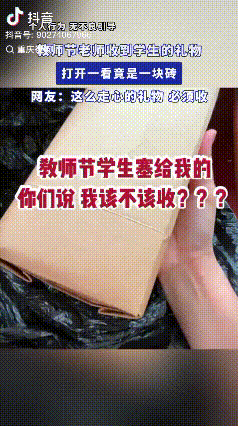 教师节当天,湖北有位老师收到学生用黑色塑料袋包着的礼物。拿在手里感觉挺沉,拆开三层包装后,她一下就愣住了,居然是块红砖。 砖头旁边压着张纸条,上面写着:“您就跟这块砖似的,哪里需要往哪搬。您的性格也像砖,够强够硬还够MAN。送您一块砖,每天搬一搬,就当做运动,瘦到一百一。(学成后送一块金砖)” 这份特别的礼物把老师逗乐了。虽说不值啥钱,但学生的这份心思让她特别感动。 视频传到网上后,网友们都纷纷点赞:“这孩子打比方打得太妙了!”确实,每个老师都跟教育大厦里的一块砖一样,默默地撑着学生成长。 现在好多家长为教师节送啥礼物犯难,其实礼物贵不贵根本没啥要紧的。像这种用心观察、用创意表达的礼物,反倒更让老师稀罕。 毕竟,老师最在乎的一直都是学生能明白他们的付出。这块实在的红砖,胜过千言万语。为这份独特的师生情点赞! 来源:重庆视点 2025-9-10 这件事你们咋看?欢迎留言讨论。