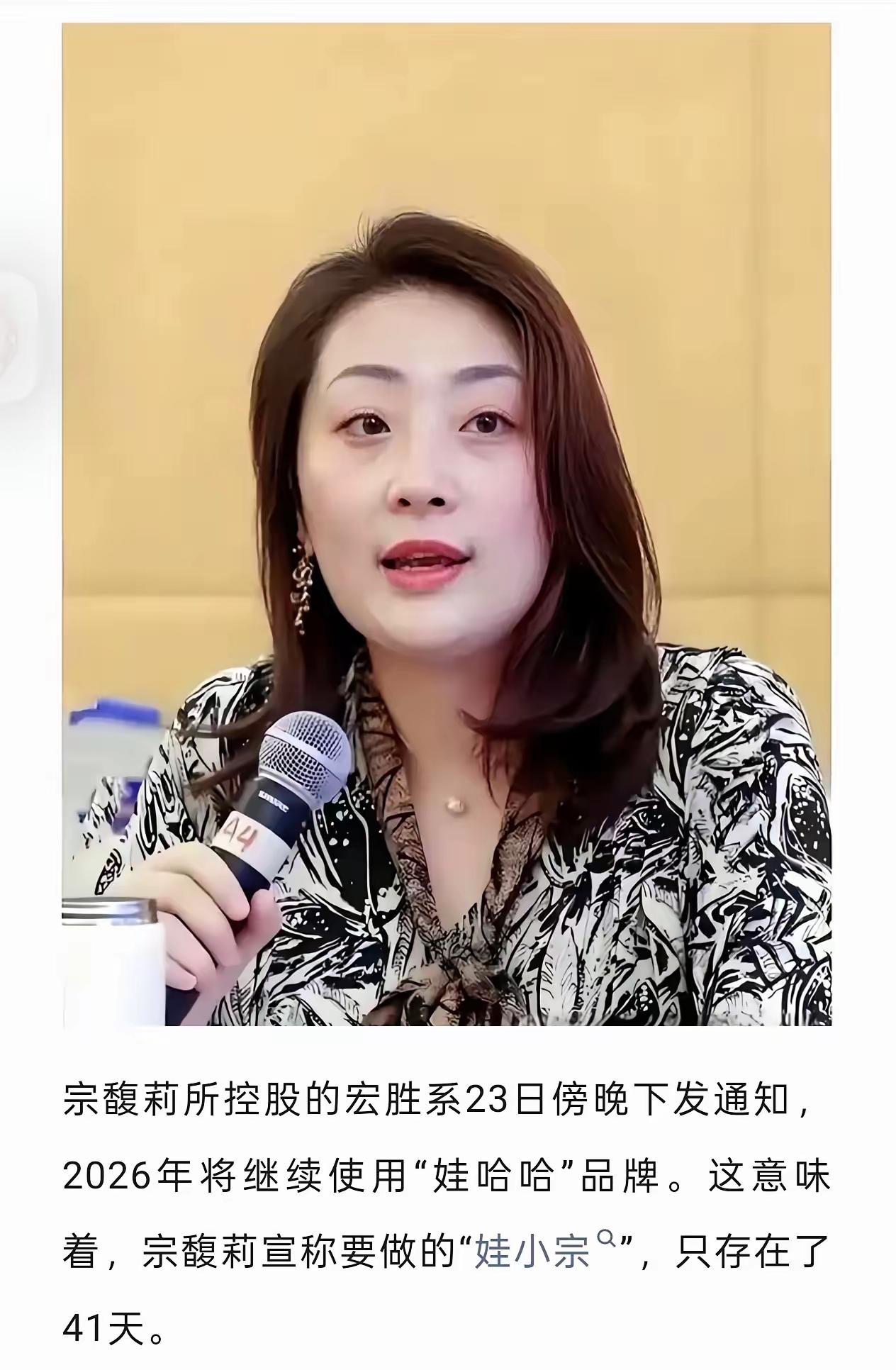 我怀疑娃哈哈跟宗馥莉一起给宗泽后做局呢。 宗泽后刚刚弄出“娃小智”想着对标宗馥莉的“娃小宗”,还抢先签下150多家经销商,结果呢,宗馥莉直接重新启用“娃哈哈”,“娃小智”要么跟经销商解约赔钱,要么就跟“娃哈哈”硬拼,但是正常人都不会选择一个名不经传的新品牌,肯定会选择“娃哈哈”这种国民品牌。只能说宗泽后怎么做都是输了。 有网友说:娃哈哈是她爹创立的,他又是股东,用不用是她的权利。宗泽后就不一样了,其哥哥在世时贴着他哥哥得了不少好处,不但不知恩图报,他哥哥走后,反而下井落石,欺负人家孤儿寡母,其人品世人可知。有些人说他有才,但都是土埋脖子的人干成啥事了?是要和孟梁浩似的八十三岁中状元呢?还哇小智呢,离开了宗庆后娃哈哈啥也不是。让我们拭目以待。 无论是‘娃小智’还是‘娃哈哈’,最终能赢得消费者认可的永远是产品品质与社会责任。希望各方以大局为重,让民族品牌持续焕发活力。 这招确实高明,用老品牌打新品牌,就像用航母对付小渔船,宗泽后这跟头栽得不冤。 这点小聪明,人被看扁了,不值得。 从中也可看出宗馥莉就是一个小肚鸡肠的普通女子而已,没有宗庆后留下的财富,她什么也不是。 大家怎么看呢?