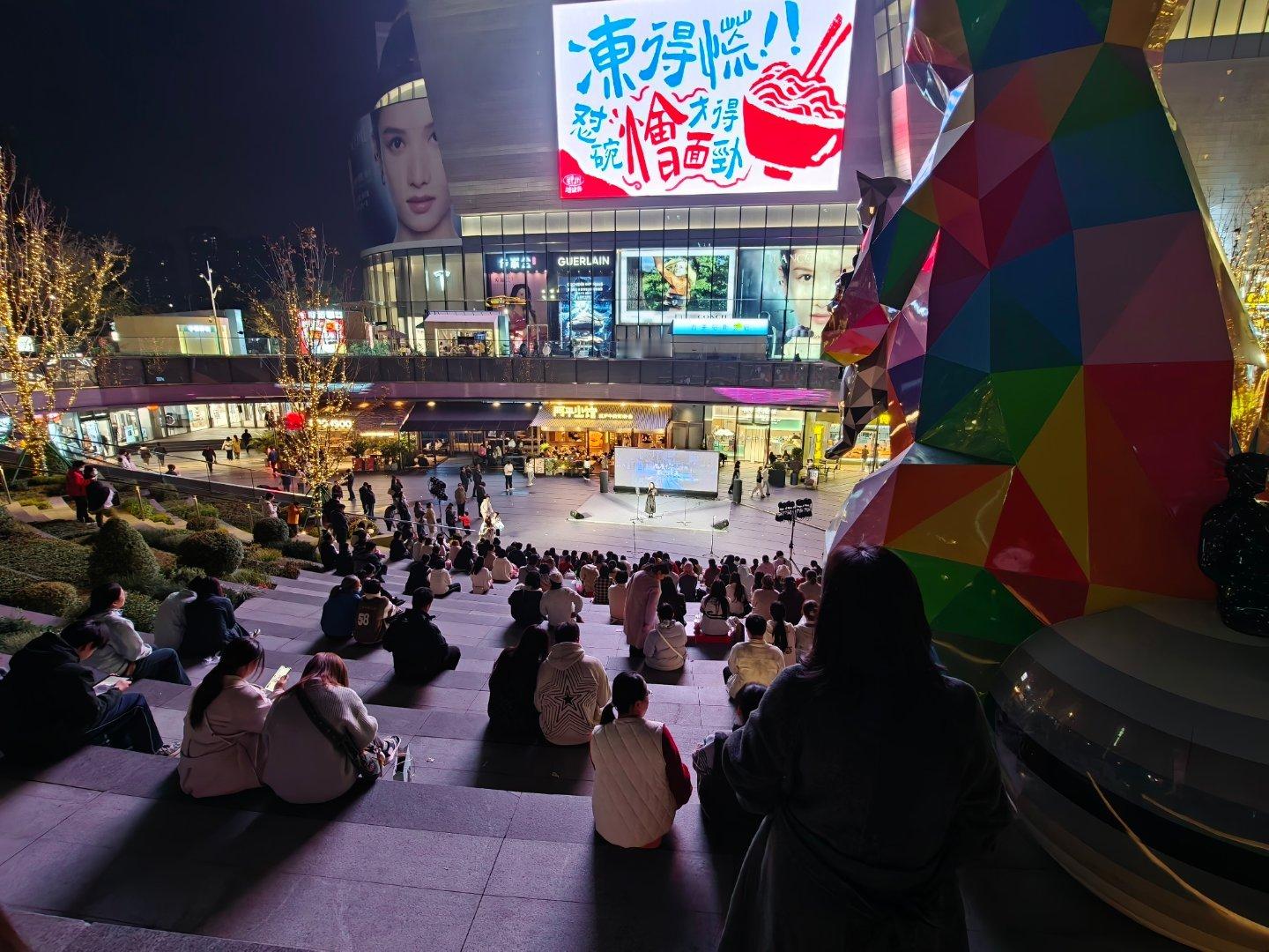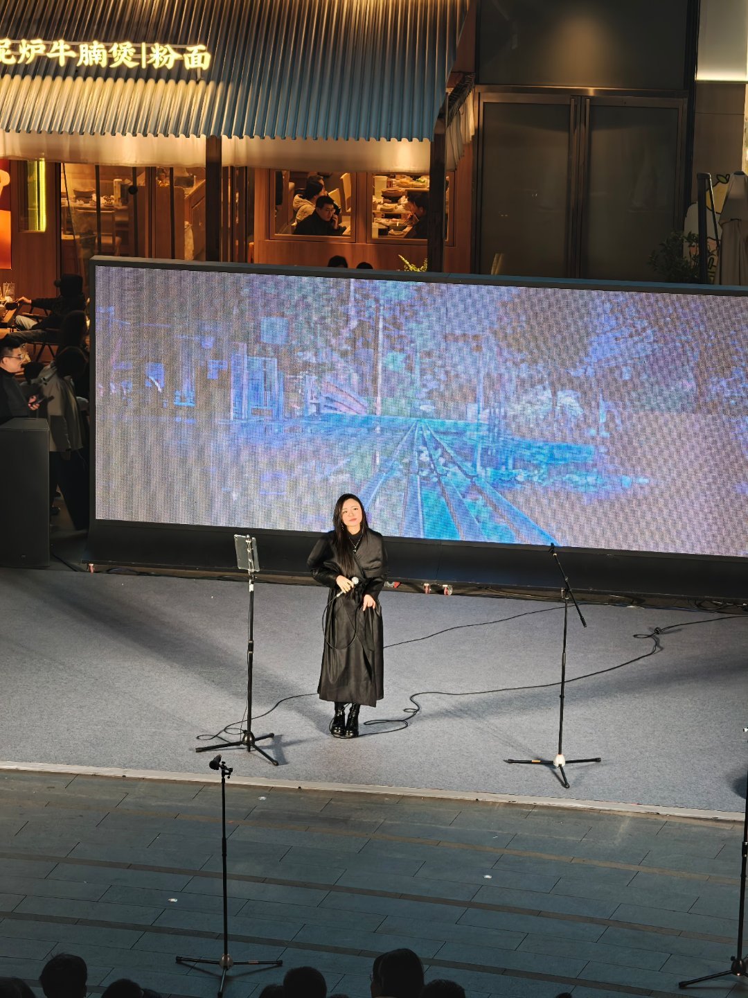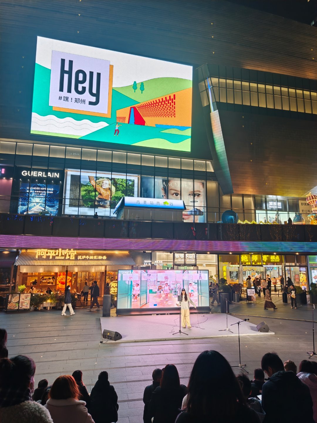 这么冷的天,还有不少人看商场举办的歌唱表演,不到半个小时换了三个唱歌的,一般一个人唱两到三首。
