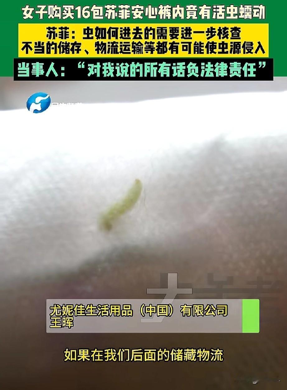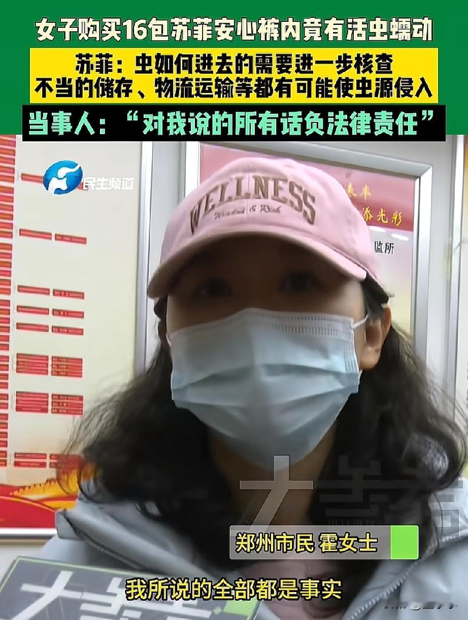苏菲是老品牌了,没想到发生这样的事情,河南郑州,霍女士购买16包的苏菲安心裤,没想到里面竟然有活虫在蠕动,这让她无法接受。 根据当事人霍女士描述,他们一直都在用苏菲这个品牌,所以都会一次性买很多,第一次发现有活虫的时候,还是女儿发现的,刚开始自己并没有多想,以为是打开了,有虫子钻进去了。 然而,接下来又发现了有活虫,霍女士这才上心,她很不明白,自己买的是大品牌,怎么会出现这样的事情。 苏菲这边的负责人为了证实,当场也拆了一包,还真的发现里面有活虫,这样的情况他们也不清楚,为什么会有活虫,还需要进一步的调查。 霍女士也当着媒体和市场监管局,对自己所说的话付法律责任,自己所说的全部都是事实,没有任何捏造的情况。 这件事情曝光后,评论区一些网友都不敢用了,有的甚至买了,都要扔掉了。 不得不说,女人真的太难了,一直用苏菲的我瞬间破防了。