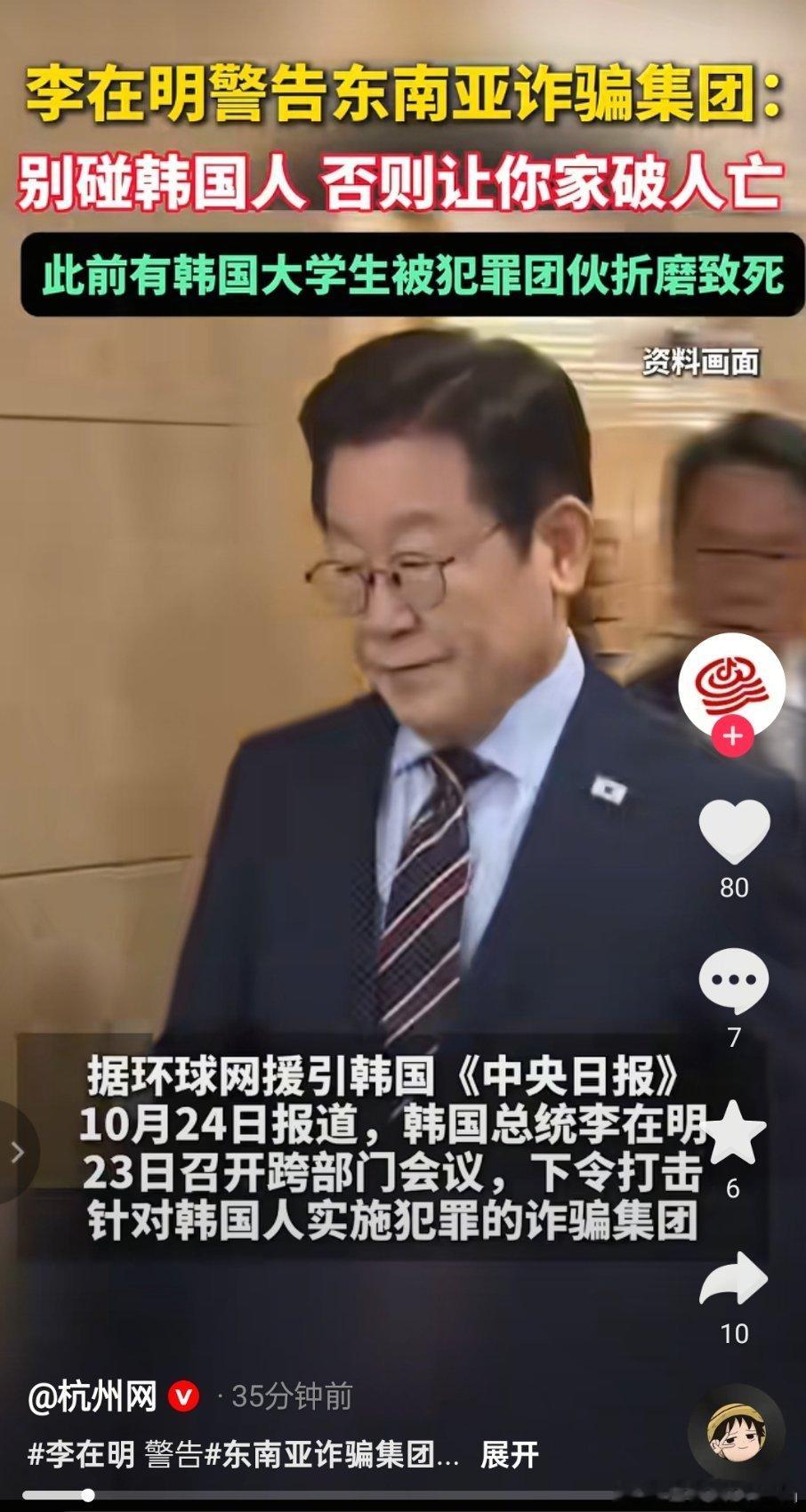 🔻李在明警告东南亚诈骗集团:“别碰韩国人,否则让你家破人亡”。[哆啦A梦吃惊][哆啦A梦吃惊]