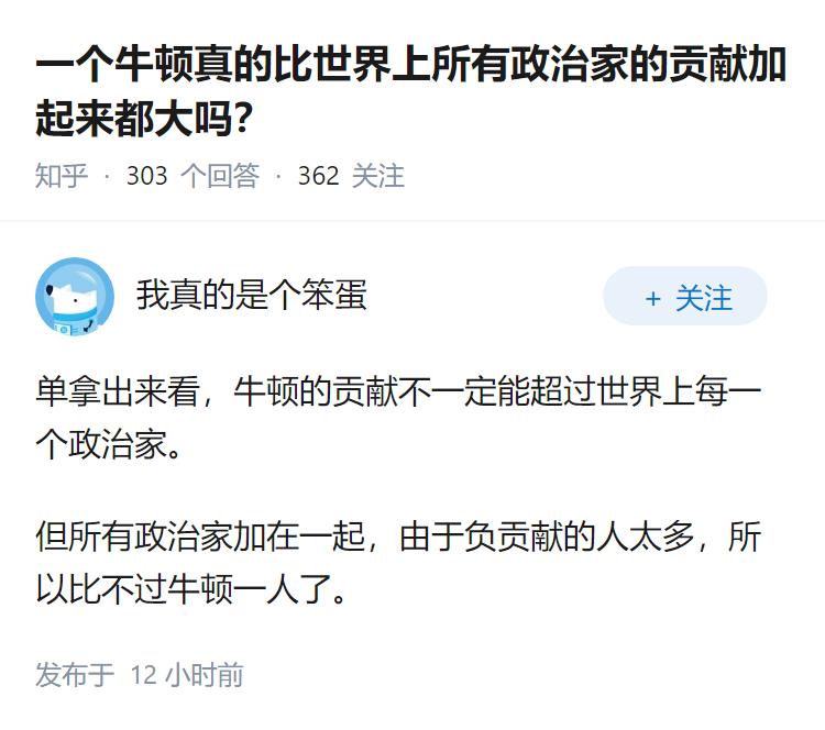一个牛顿真的比世界上所有政治家的贡献加起来都大吗?