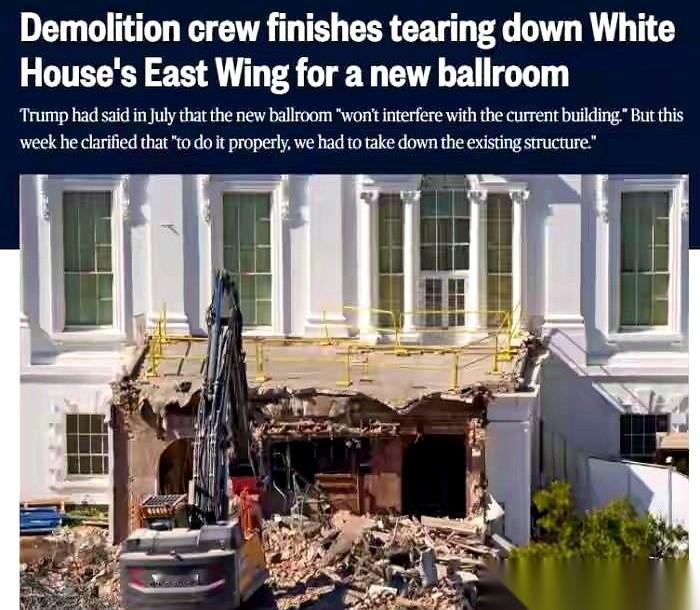 我一直以为,地球上最牛的那栋小白楼,是权力的终极象征,牢不可破。 结果,他们说拆就拆,说建就建。 这感觉就好像,一个家,混得好好的,谁会没事儿去扒拉祖宅的墙角?除非,要么是这房子真不行了,要么是这家人心里有点慌。 你说,是不是心里发虚? 感觉老本儿不够吃了,家底儿有点抖了,得赶紧装修装修门面,贴上最贵的墙纸,换上最亮的灯,好让外人觉得——我们家好着呢,依然是这条街最靓的仔。 给自己壮壮胆,也给外人放放烟雾弹。 当然,也可能是另一种逻辑。 家里底子太厚了,厚到想怎么折腾就怎么折腾。 就是要告诉所有人:你看,我们有的是实力,连权力心脏都能拿来随便“开刀”,这叫自信,也叫示威。 这事儿挺有意思的。 一栋建筑的拆建,背后可能是一个帝国的深呼吸。 就看这一口气,是喘不上来了,还是在憋个大招。