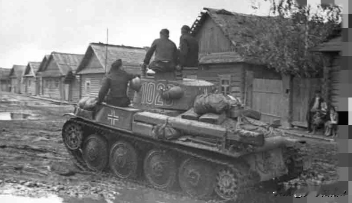 当1941年6月22日战争爆发的时候,德三军队当中有772辆.Kpfw.38(t)坦克,这些坦克构成了后来冲向莫斯科的6个德三装甲师7、8、12、19、20、22)的中坚力量。 但是,当战争进行到1941年8月的时候,就已经有365辆.Kpfw.38(t)被从德装甲部队的财产清单上去掉了,这几乎占到开战时候德三军队的.Kpfw.38(t)数量的一半。 虽然.Kpfw.38(t)坦克在莫斯科战役当中损失较大,但这种坦克并没立刻从德三军队中消失,因为在1942年3月的克里米亚战役当中,德三第22装甲师的.Kpfw.38(t)依然参战并在那里受到进一步的损失。