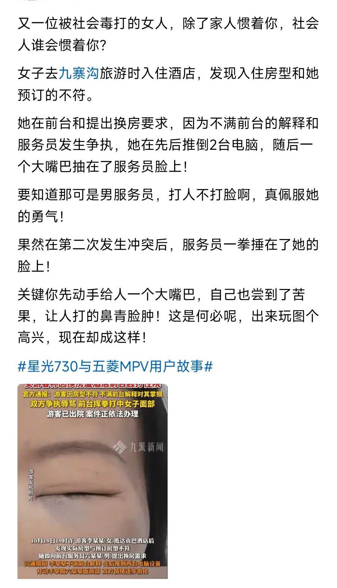 捋一下账:酒店有错在先,女客扇人耳光错在后。酒店要被重罚,假一赔十!女人打人在先,但男士已打回,酒店赔偿女客医药费,女游客赔偿服务员精神损失! 就这样吧!