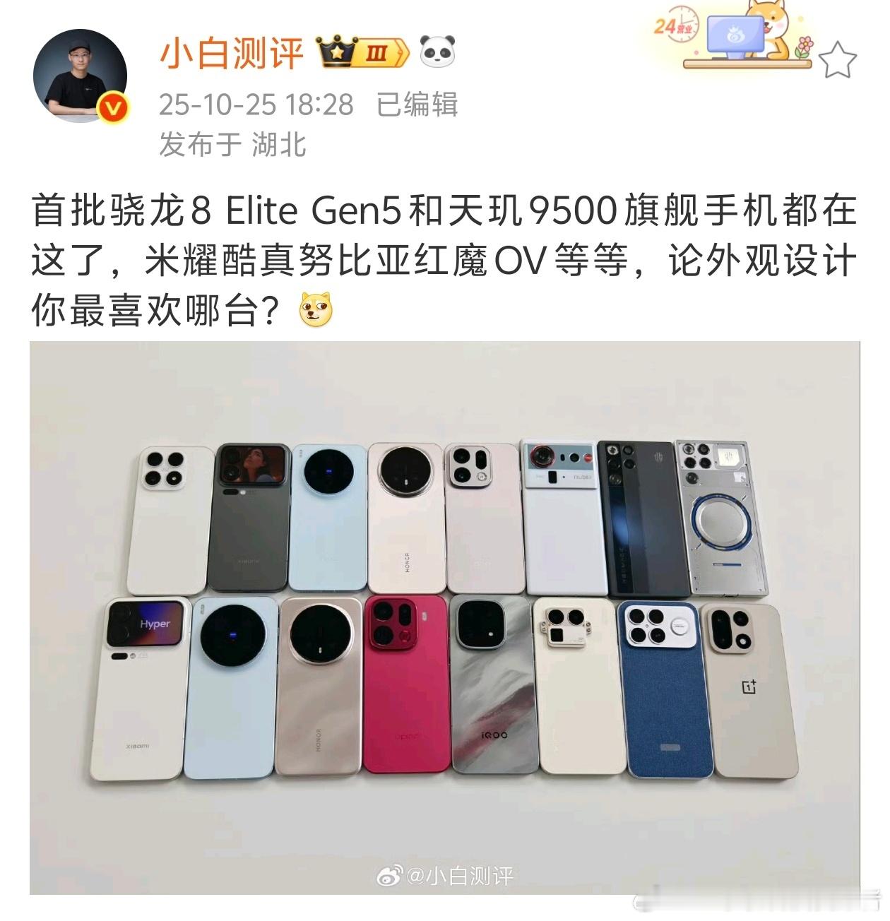 最近发布的这一批旗舰手机,我个人认为vivo X300系列、OPPO Find X9系列、荣耀Magic8系列、iQOO 15以及小米17 Pro系列颜值都不错。至于最喜欢的,我还是更喜欢vivo的大圆形设计。[二哈]