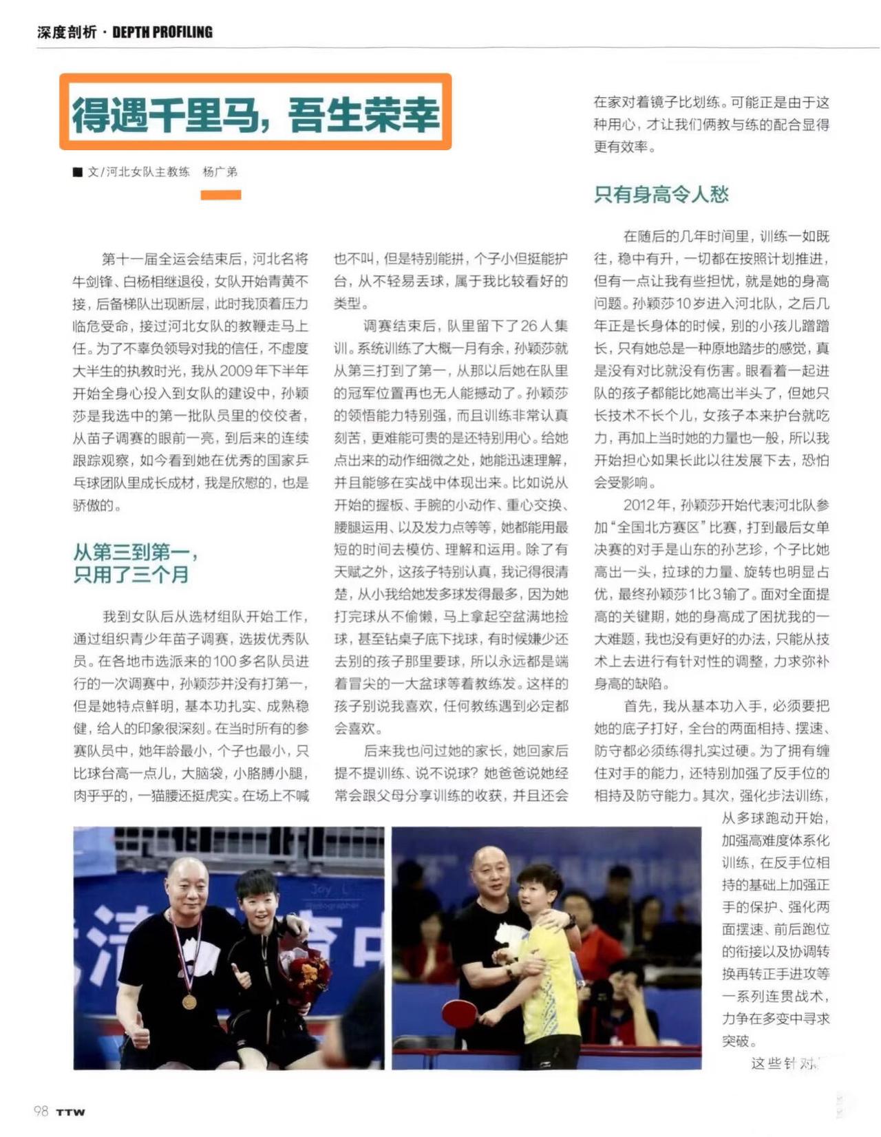 看到杨指笔下的孙颖莎,师徒的感情让人泪目。 亦师亦友亦父,字里行间都透露着他对