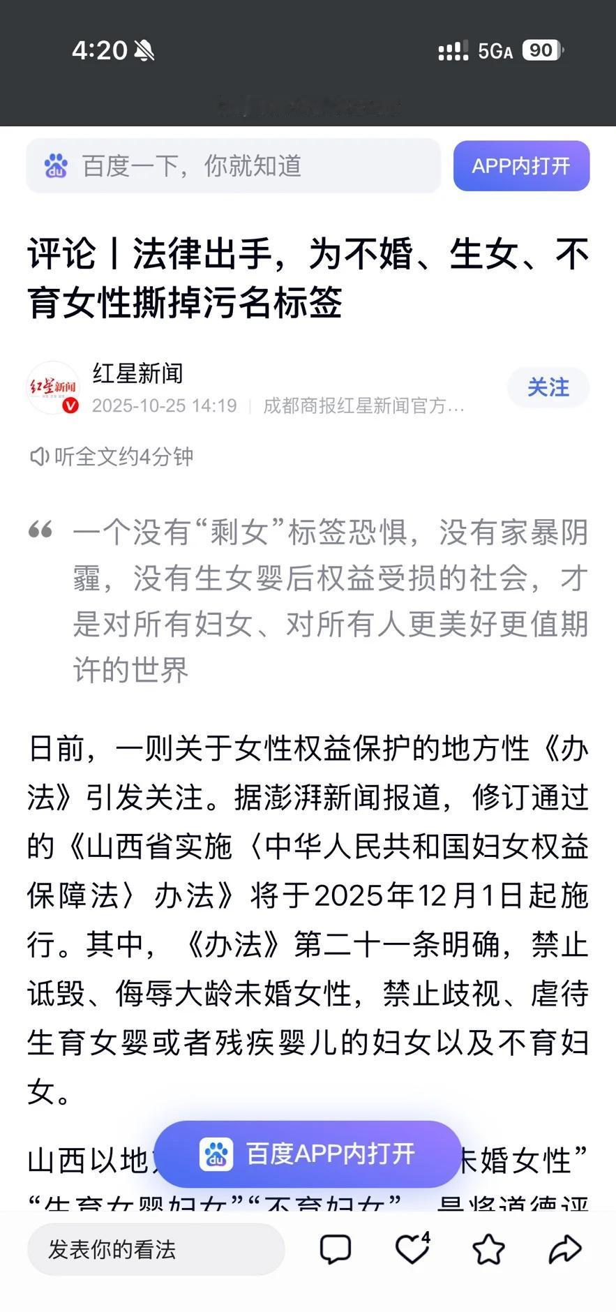 山西将“大龄未婚女性”称呼写进法律 8年前,官媒中国妇女报将“剩女”列为性别歧视类禁用词,现在法律出手撕掉污名标签 山西 大龄未婚女性 妇女 妇女法律 大同 本帖被吞两次,到底谁急了…
